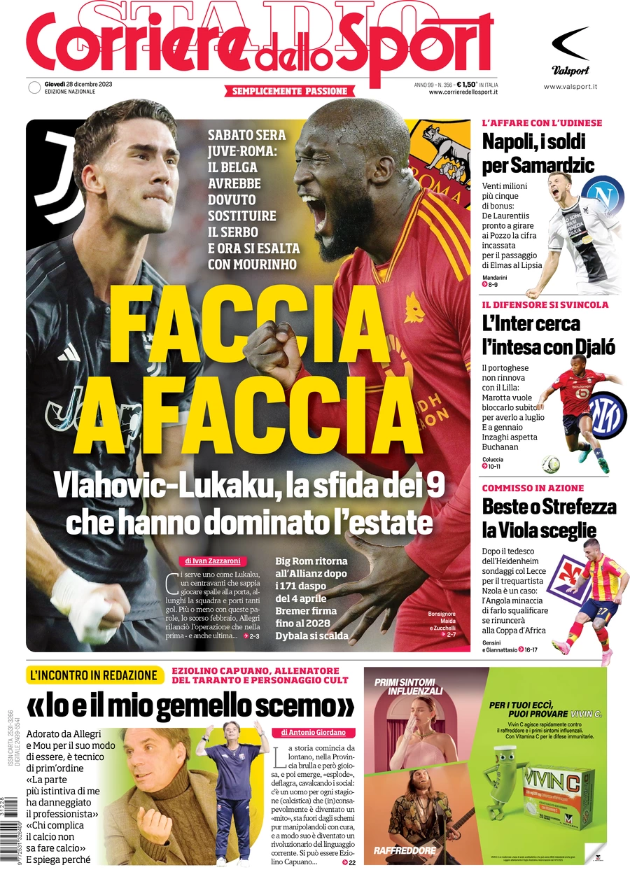 Spazio anche all’iniziativa di Gudmundsson con ragazzi e ragazze della Freesport Genova di Largo Cattaneo e ad un approfondimento sul dualismo in porta tra Martinez e Sommer in quella che viene definita “la gara degli occhiali stroboscopici“. Infine, spazio all’interno di un’intervista al Sindaco Bucci per il tema Palazzetto dello Sport e, soprattutto, stadio Ferraris. Con un virgolettato che sembra più un’esortazione: “Io a fine giugno mi aspetto il Palasport operativo – dichiara il primo cittadino di Genova – Quanto allo stadio, il progetto c’è e io l’ho visto. Ma le squadre devono farci un’offerta di qualche tipo. In ogni caso a fine 2024 decideremo: o lo fanno le squadre o lo facciamo noi, perché vogliamo avere le carte in regola per giocarci gli Europei del 2032″. Addirittura, in uno dei riquadri che sintetizzano le parole del Sindaco in base ai vari temi trattati, si legge: “Le società di calcio devono svegliarsi. Altrimenti sarà Tursi a occuparsi del restyling dello stadio Ferraris“.