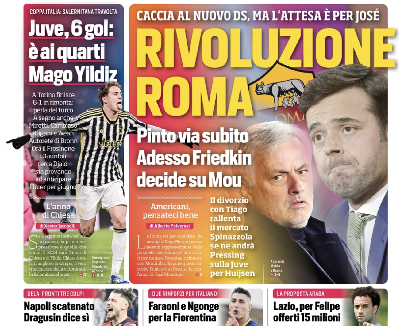 CORRIERE DELLO SPORT – Più che della partita, si parla di Dragusin sul Corriere dello Sport che titola: “Dragusin dice sì al Napoli“. In realtà il giocatore è regolarmente convocato per Bologna e giocherà. Quel che si scrive è che il Napoli starebbe provando a sbaragliare la concorrenza offrendo come contropartite Zanoli e Østigard. Nell’articolo, peraltro, si legge che “è un affare complicato, questo più degli altri, che prevede valutazioni su tre calciatori da incastrare, però a Castel Volturno hanno fiducia, anche sei rapporti con l’entourage di Demiral rimangono vivi, non si sa mai“. Fronte mercato, si parla del possibile interesse del Genoa per Djuric e Henry dell’Hellas Verona. Infine, ecco un approfondimento su Bologna-Genoa, dove si parla prevalentemente della formazione felsinea, ma anche della formazione di Gilardino. “Retegui più Messias, la coppia che fa sperare Gila” è il titolo che accompagna il focus corredato dalle probabili formazioni.