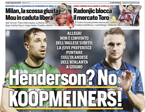 TUTTOSPORT – Chiude Tuttosport segnalando che Pellegri, richiesto anche dal Genoa oltre che da Empoli e Frosinone, Vagnati non lo vorrebbe cedere, sicuramente non in prestito. “Il Genoa nicchia, per il vice Retegui non vuole spendere se non bruscolini. Pietro ieri ha postato un ringraziamento doppio al tifosi del Toro: anche per la comprensione. Il dt e Juric gli hanno ribadito che spazio ne troverà. I muscoli di Zapata vanno gestiti, si sa” chiosa il quotidiano sportivo. Anche qui accostato nuovamente il nome di Djuric al Genoa.