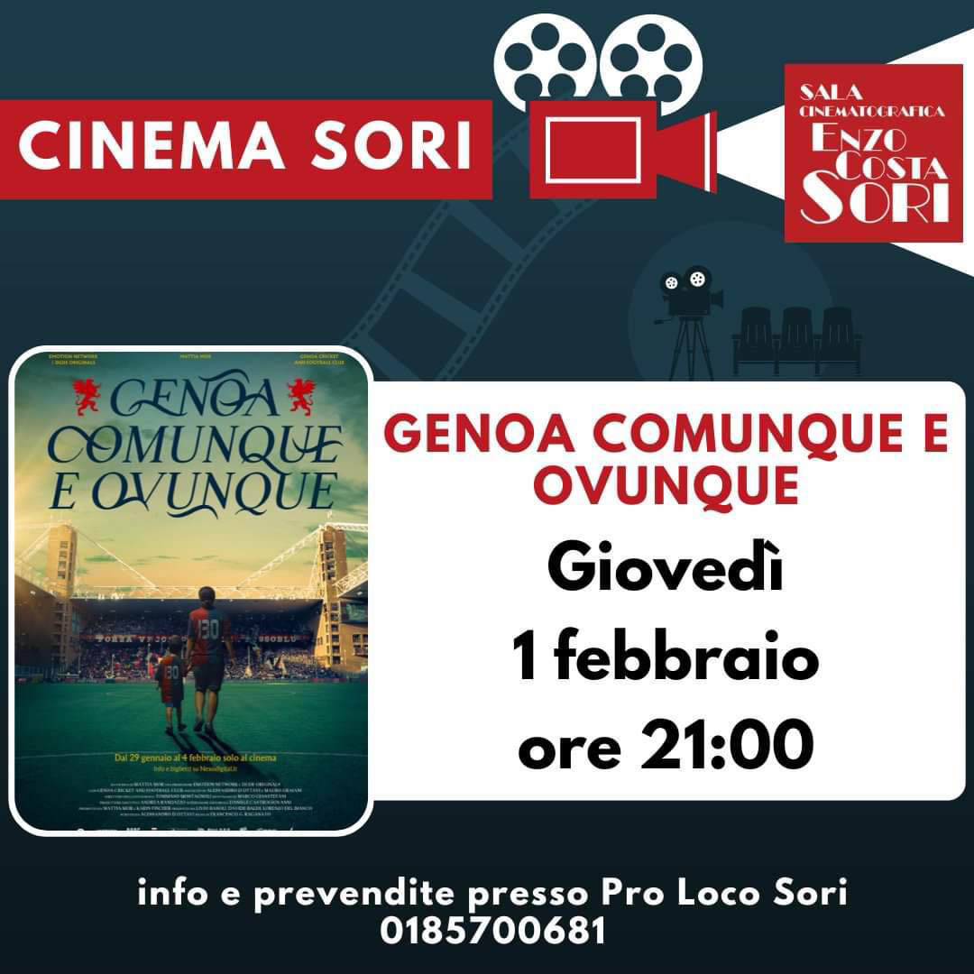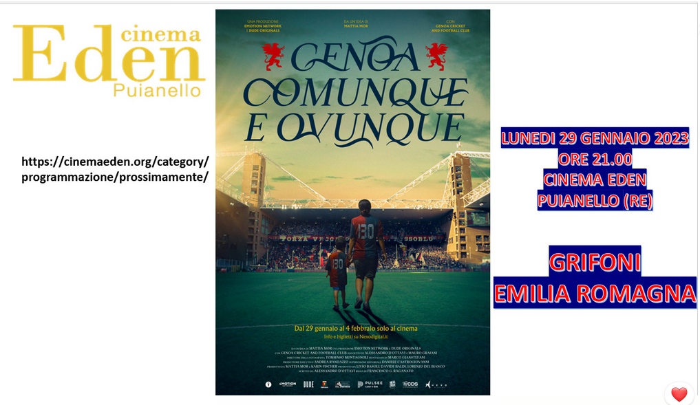 Organizza la visione del film anche il Genoa Club Ronco Scrivia che ha organizzato la proiezione in due differenti giornate, lunedì 29 e mercoledì 31 gennaio, presso il Cinema “Columbia”.