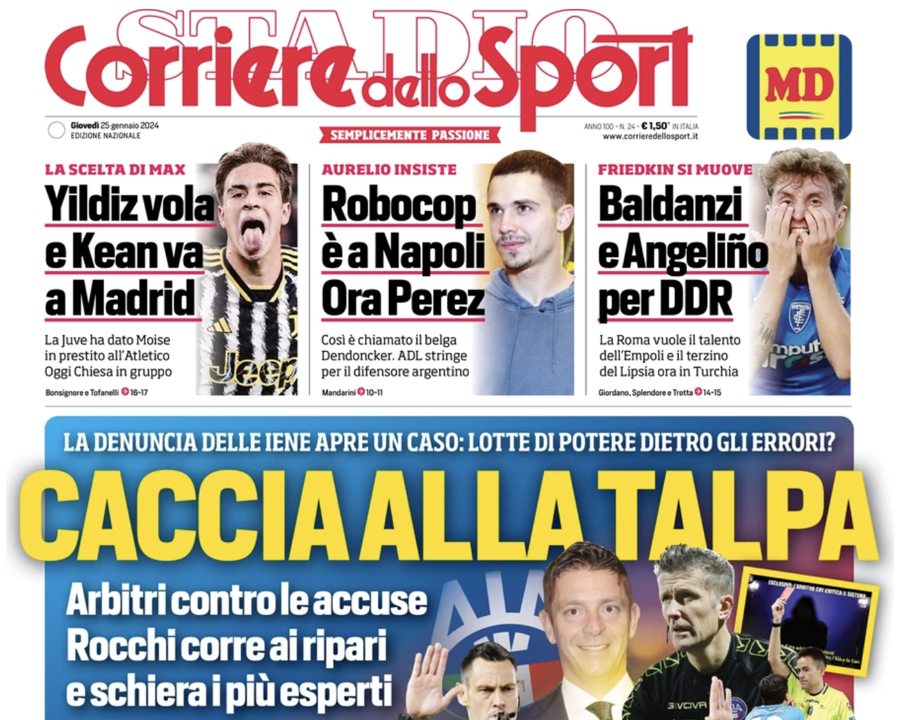 CORRIERE DELLO SPORT – Il Corriere dello Sport fa menzione di una riunione che ha radunato 14 club su 20 di Serie A, quelli che il quotidiano definisce “Small Giants“, ossia i piccoli giganti, tutti quei club che non fanno parte delle sei big del campionato (Inter, Juventus, Milan, Napoli, Lazio e Roma). Tra i temi dibattuti anche quello arbitrale e la via che predica la necessità di vigilare sull’operato degli arbitri. Alcuni club, tra cui il Genoa, si sarebbero anche espressi a favore dell’AIA. Ci si sposta poi sul fronte mercato parlando di Napoli e, neppur tanto indirettamente, di Genoa. “Attesa Perez, Ostigard vuole solo il Genoa” è il titolo del focus sul mercato partenopeo dove si legge: “Il Napoli per provare a limitare i danni di tutti – economici per se stesso e tecnici per la controparte – ha provato a inserire Leo Ostigard nell’affare, ma il norvegese ha voglia di Genova, di Genoa, un vecchio amore a questo punto mai dimenticato. Niente da fare, l’Udinese deve guardare altrove e sta lavorando a un profilo. E l’attesa cresce“.
