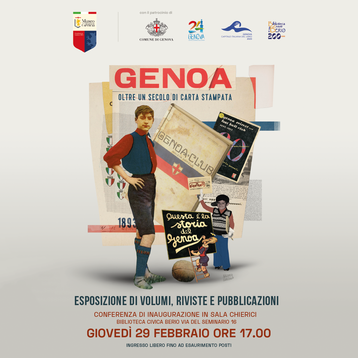 “Nell’ambito delle manifestazioni per Genova Capitale italiana del Libro 2023, la Fondazione Genoa 1893 ETS, in collaborazione con la Biblioteca Civica Berio e col patrocinio del Comune di Genova, presenta materiale, per definizione edito, ma “inedito” per molti, inerente una importante realtà cittadina apparentemente distante dal mondo dell’editoria: il Genoa Cricket and Football Club.