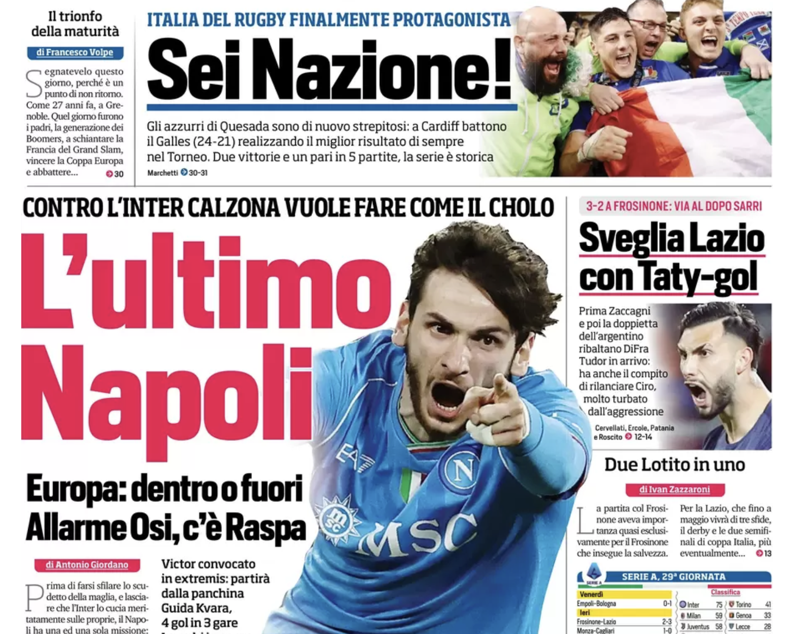 CORRIERE DELLO SPORT – “Cercasi la partita perfetta, quella da Grifone” si legge sul Corriere dello Sport in merito all’impegno di oggi di Retegui e compagni. Occhi sulle parole di Alberto Gilardino che, nella conferenza stampa di ieri, ha parlato della necessità di tirare fuori il “giusto spirito” per ottenere un risultato positivo a Torino: “La Juventus è una squadra difficilissima da affrontare, con grandissima qualità e giocatori che possono cambiare la partita in ogni istante, ma se mettiamo in campo il giusto spirito possiamo giocarcela con chiunque”. Vuole la massima attenzione anche Massimiliano Allegri, che non si fa distrarre dalle situazioni riguardanti il futuro e pone si concentra sulla sfida di oggi: “E’ una gara importante per tutti, abbiamo degli obiettivi da raggiungere che sono la qualificazione in Champions League e la finale di Coppa Italia“.