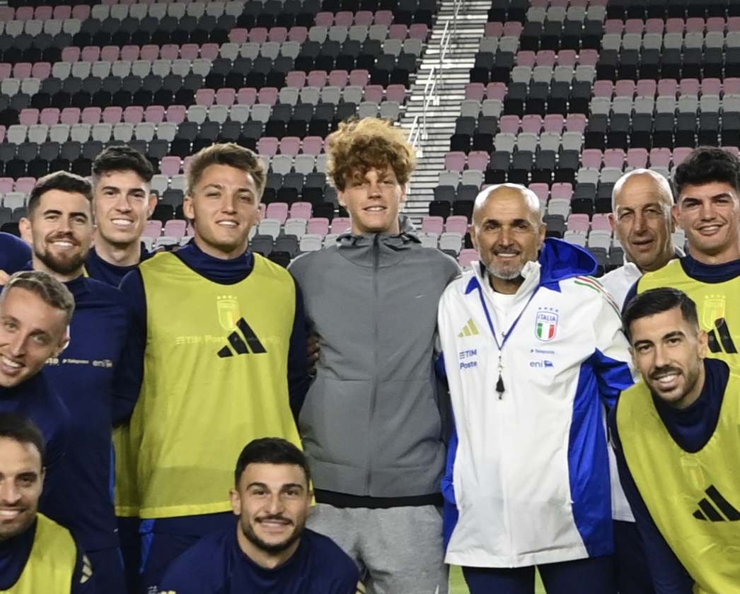 Mateo Retegui e Jannik Sinner, una coppia inedita che compare sul sito ufficiale della FIGC nel presentare il primo allenamento della Nazionale al Chase Stadium di Miami. Primo allenamento con sorpresa per gli Azzurri, che hanno ricevuto la visita del tennista italiano, uno degli sportivi più importanti del panorama nostrano, impegnato in questi giorni agli ATP di Miami. Nella foto di squadra con Sinner, al centro della foto, il primo ad abbracciarlo è proprio Retegui.