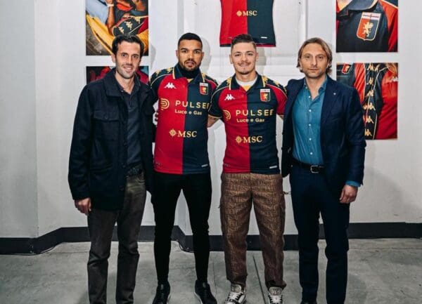 Si è tenuta questa sera al Basic Village di Milano la presentazione della quarta maglia del Genoa, le cui prime immagini sono state pubblicate proprio questa mattina sui canali ufficiali della società rossoblù. A presentare all’evento due calciatori del Grifone: Messias e Vitinha. A margine della presentazione, lo stesso giocatore brasiliano ha rilasciato alcune dichiarazioni: “Sono orgoglioso di indossare questa maglia. È un club con una storia bellissima e la gente lo dimostra. Si vede la passione che i genoani hanno per questa maglia. Noi calciatori dobbiamo essere orgogliosi di giocare e indossarla. Secondo me oggi ci sono pochi tifosi come loro. Sentiamo il calore ogni partita”. All’evento erano presenti i vertici di Kappa, tra cui il CEO Alessandro Boglione, e il DG rossoblù Flavio Ricciardella, oltre ai già segnalati calciatori del Grifone.