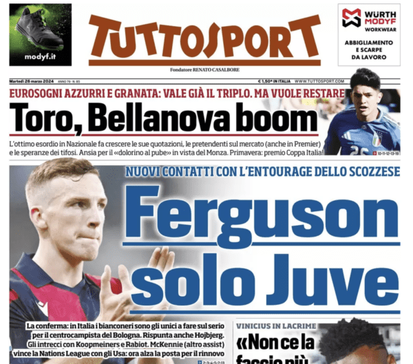 TUTTOSPORT – Anche Tuttosport parla della consegna della sciarpa del Genoa Club New York a Mateo Retegui, evento avvenuto al termine di Italia-Ecuador grazie alla caparbietà di Giacomo Salvarezza, iscritto al club ed ex canterano del Genoa, ora residente a New York per ragioni di lavoro. “La sera prima della partita con l’Ecuador c’era un incontro dei calciatori azzurri con un’associazione di italo americani, ma c’era troppa gente e non eravamo riusciti a fotografarlo con la nostra sciarpa, poi però ci siamo sistemati nei posti dietro la panchina, la sera della partita, e Mateo ha capito subito tutto – spiega Salvarezza – È stato molto simpatico. Ed è stato tra i pochi giocatori a rimanere sotto la tribuna a fine partita. Un bel giocatore, sono contento che sia nel Genoa“. Tuttosport chiude parlando anche di Barrenechea come possibile contropartita della Juventus in una eventuale trattativa per Gudmundsson.