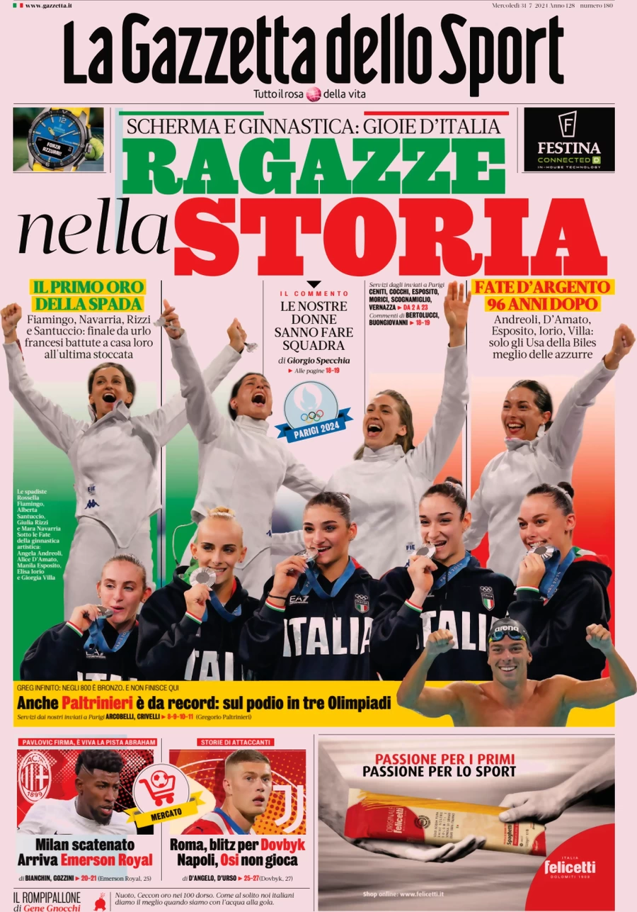 CORRIERE DELLO SPORT – Il Corriere dello Sport, nel parlare della Fiorentina che potrebbe perdere Nico Gonzalez, richiesto dall’Atalanta, accosta nuovamente Retegui alla formazione viola, anche se il primo pensiero dei Viola in caso di addio di Gonzalez sarebbe Berardi del Sassuolo. Si parla anche di Gollini che prepara l’esordio contro il Brescia e della campagna abbonamenti che oggi vivrà l’ultimo giorno di vendita libera prima che venga comunicato il dato finale ufficiale.