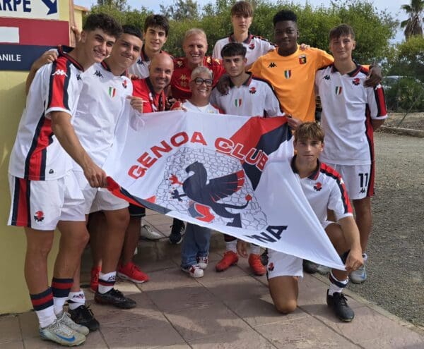 All’esordio del Genoa Under 18 sul campo del Cagliari era presenta il pubblico rossoblù rappresentato dai tifosi del Genoa Club Sardegna (clicca QUI per conoscere la loro storia), tra gli oltre cento sodalizi di tifosi iscritti all’ACG. Proprio la stessa ACG ha diffuso la notizia e le foto di questo pomeriggio, con tanto di scatti assieme a mister Ruotolo e ai ragazzi classe 2007.