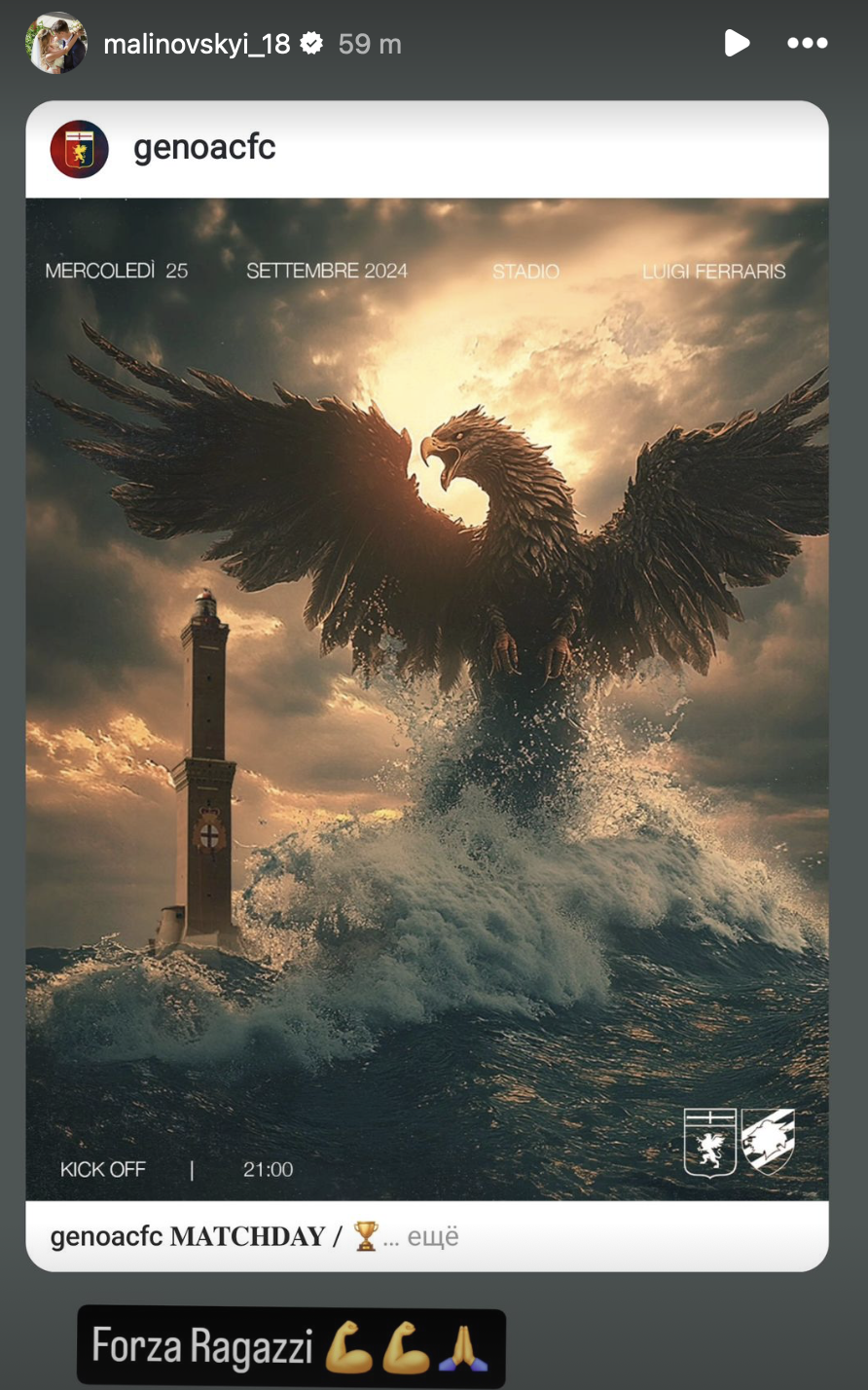 Ieri Ruslan Malinovskyi aveva ringraziato tutti per i messaggi di supporto dopo il grave infortunio rimediato a Venezia. Oggi ha mandato un messaggio di sostegno per i suoi compagni in vista del derby che si giocherà questa sera. “Forza ragazzi” ha scritto sul proprio profilo Instagram pochi minuti fa.