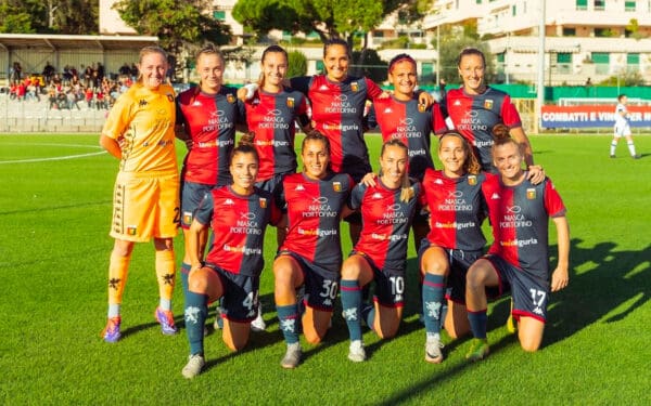 GENOA WOMEN (4-2-3-1): Forcinella; Mele, Di Bari, Lipman, Giles; Giacobbo, Campora; Acuti, Cuschieri, Bargi; Ferrato. A disposizione: Macera, Bettalli, Abate, Errico, Rigaglia, Ferrara, Oliva, Parolo. Allenatore: Fabio Fossati.