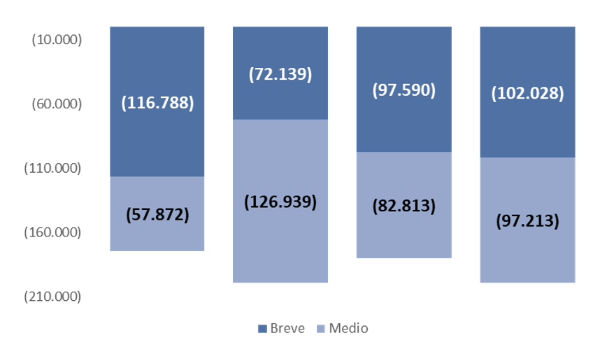 Va innanzitutto analizzata la suddivisione del debito netto fra breve termine (entro 12 mesi) e medio termine (oltre 12 mesi). Il momento del pagamento aiuta, infatti, a capire il peso che lo stesso potrà avere sulla gestione corrente.