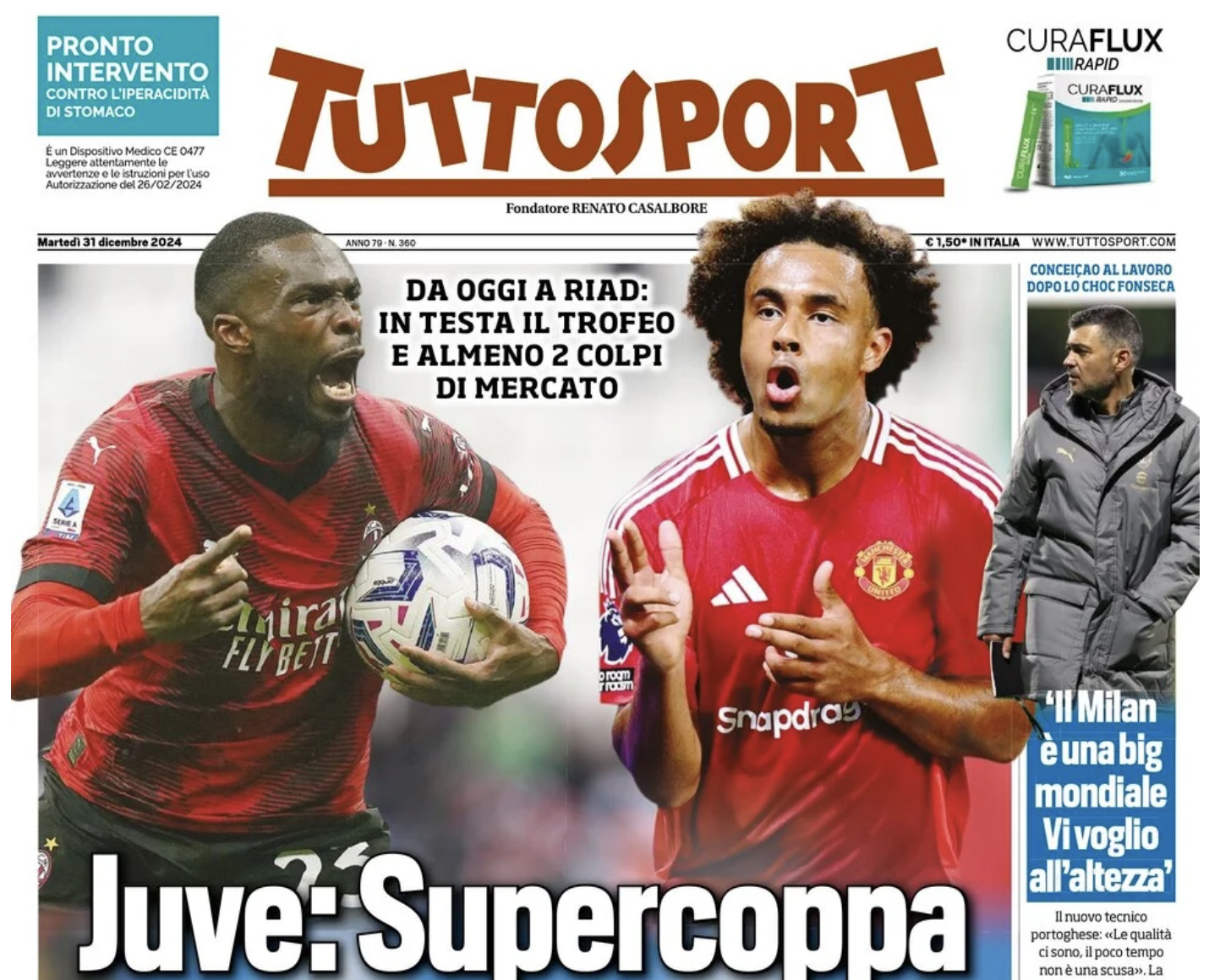 SECOLO XIX – Il Secolo XIX questa mattina ripercorre il 2024 del Genoa titolando: “Club dalla crisi 777 alla nuova era Sucu. In campo alti e bassi: risalita con Vieira“. Si legge ancora: “Ottima chiusura dello scorso campionato, ma poi con i guai della holding Usa sono arrivate cessioni illustri e difficoltà. Esonero doloroso di Gila, però con il francese la squadra è cresciuta. Adesso c’è attesa per le mosse del patron romeno”. Nella chiosa finale all’articolo si profila la possibilità che Sucu segua il Genoa già nella prossima trasferta di Lecce. Vi è poi un secondo approfondimento su Balotelli, che è tornato in anticipo ad allenarsi col Grifone e lancia più di un indizio via social sulla sua volontà di rimanere al Genoa.