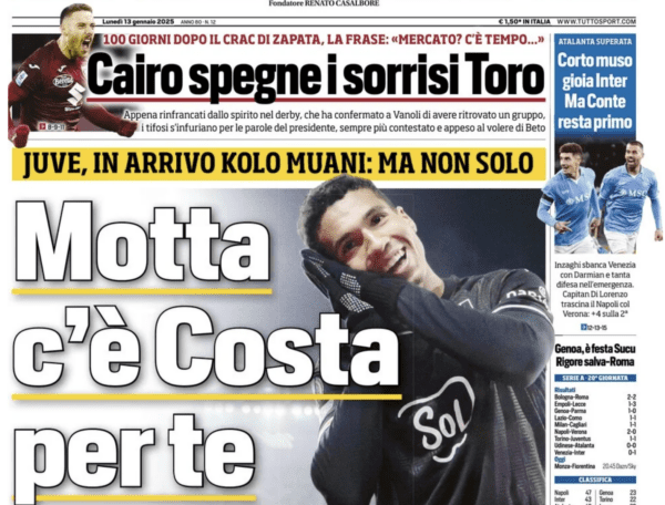 TUTTOSPORT – “Frendrup gol. Vieira fa il 13 e allontana la zona calda” scrive Tuttosport stamane per introdurre all’analisi del successo rossoblù sul Parma. Si legge ancora: “Il tecnico elogia il danese: “È bello lavorare con lui, è sempre positivo. Balotelli? La cosa che conta di più è la squadra“. Fronte mercato, il quotidiano titola: “Genoa tra Bamba e Soulè“.