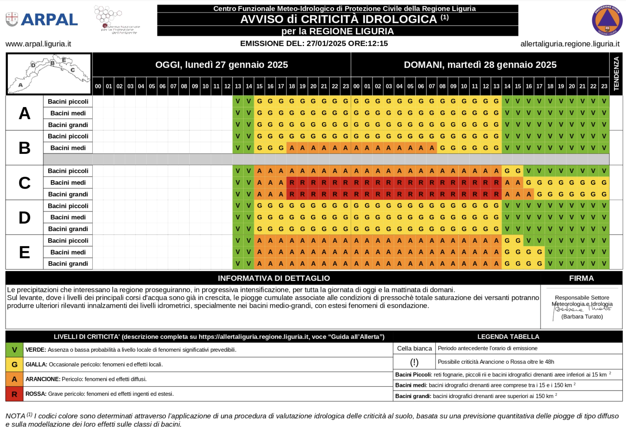 La Sala Operativa Regionale resterà aperta per tutta la durata dell’allerta. In caso di eventi intensi, durante l’allerta sarà pubblicato il monitoraggio sul sito https://allertaliguria.regione.liguria.it.