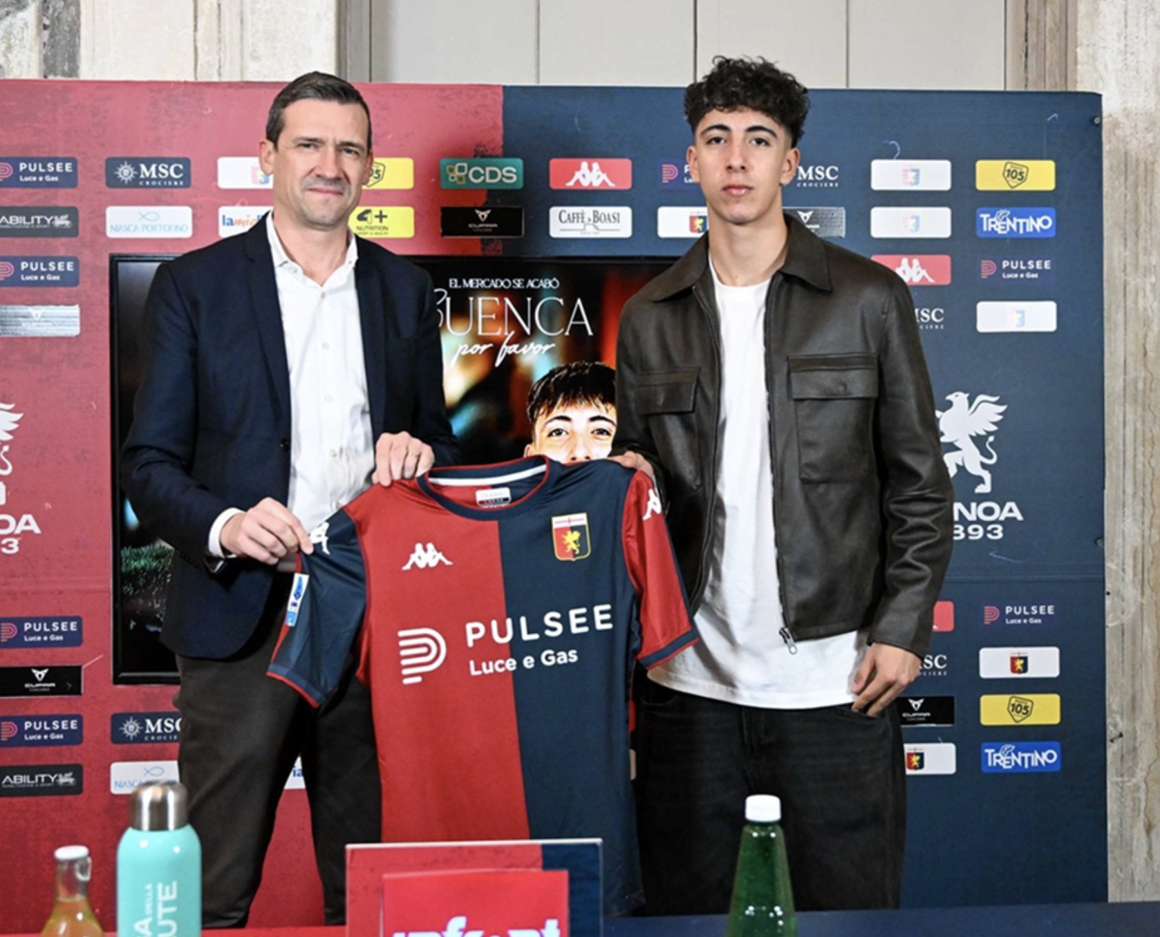 Il classe 2005 Hugo Cuenca, arrivato questo pomeriggio per svolgere le visite mediche col Genoa, è un nuovo giocatore rossoblù. Arriva a titolo definitivo dal Milan, che si riserva una percentuale sulla futura rivendita.