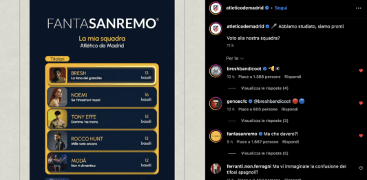 Il Festival di Sanremo non è più un fenomeno solo musicale, ma un fenomeno sociale. Nel caso in questione, è diventato proprio un fenomeno social. Come esiste il fantacalcio, esiste il Fantasanremo, e tra chi ha deciso di costruire la propria squadra di cantanti che si esibiranno all’Ariston si è palesato anche l’Atletico Madrid, che … Leggi tutto Sanremo 2025 | Il siparietto social tra Genoa, Atletico Madrid e Bresh – FOTO