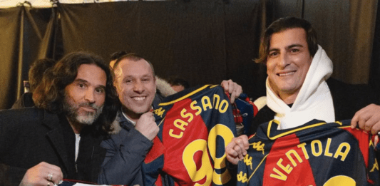 Sanremo 2025 | Bresh e le tre maglie del Genoa per Adani, Ventola e Cassano – FOTO