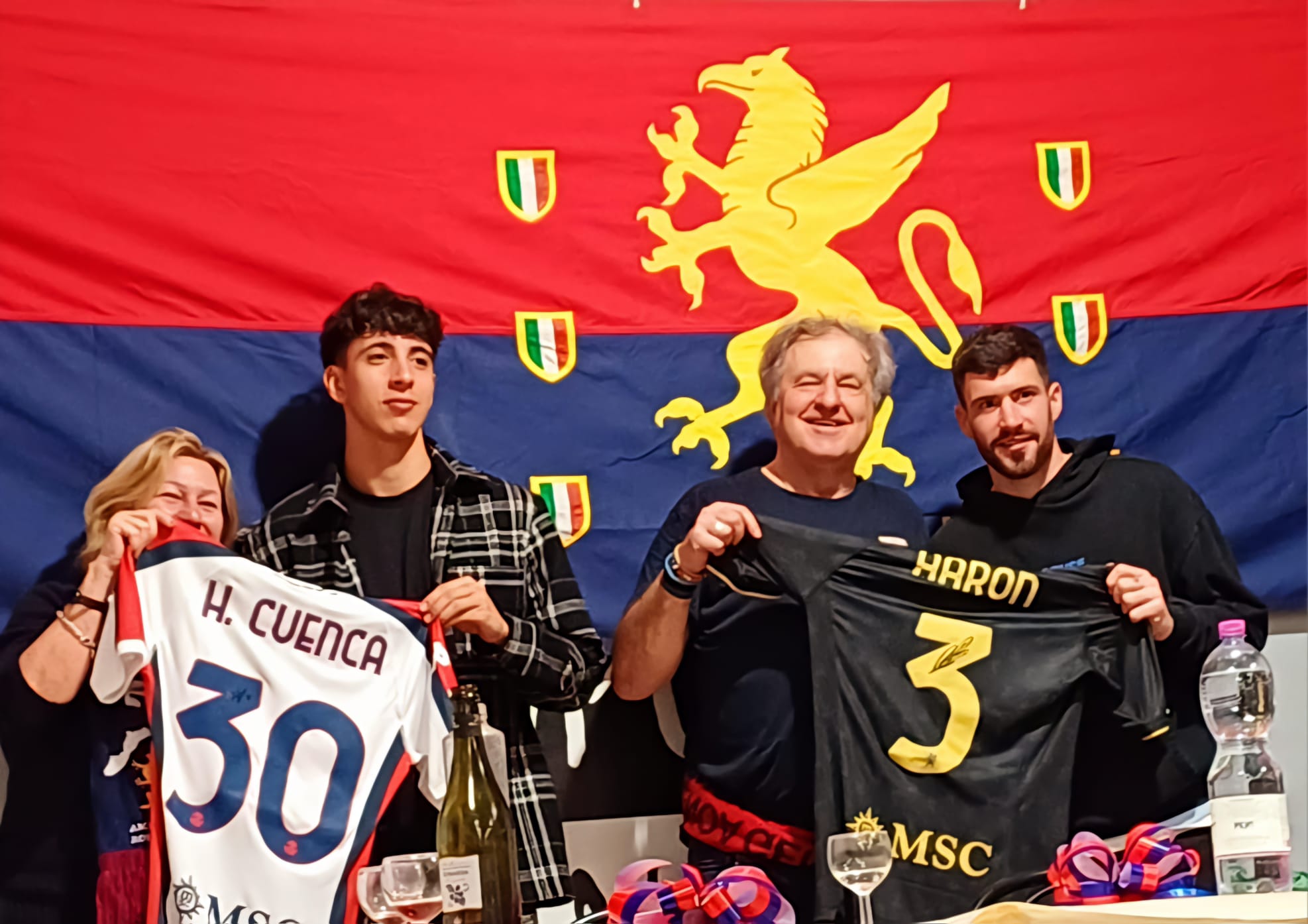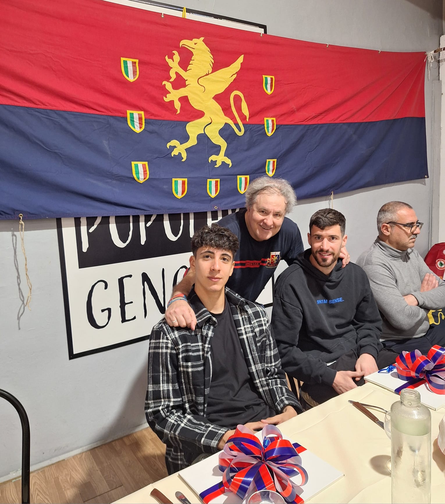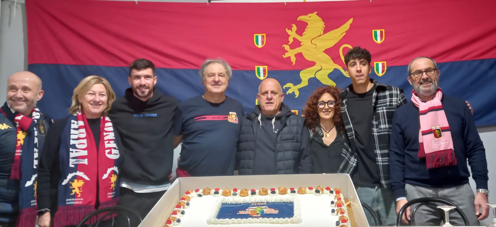 “Grande successo ieri della festa organizzata dai Club Dip. Regione Liguria e Arpal dei presidenti Giovanni Villani e Rosella Bertolotto, con una cena presso la Cucina Popolare Genovese che svolge una benemerita attività sociale e solidale. Graditi ospiti i calciatori Aaron Martin e Hugo Cuenca, accolti con entusiasmo, hanno partecipato, accompagnati da Matteo Rossi, con grande simpatia e disponibilità, alla serata conviviale, allietata da una playlist musicale a carattere, naturalmente rossoblù. Per l’ACG-Associazione Club Genoani hanno partecipato e portato i saluti il presidente Paolo Caricci e la Vicepresidente Daniela Benghi“.