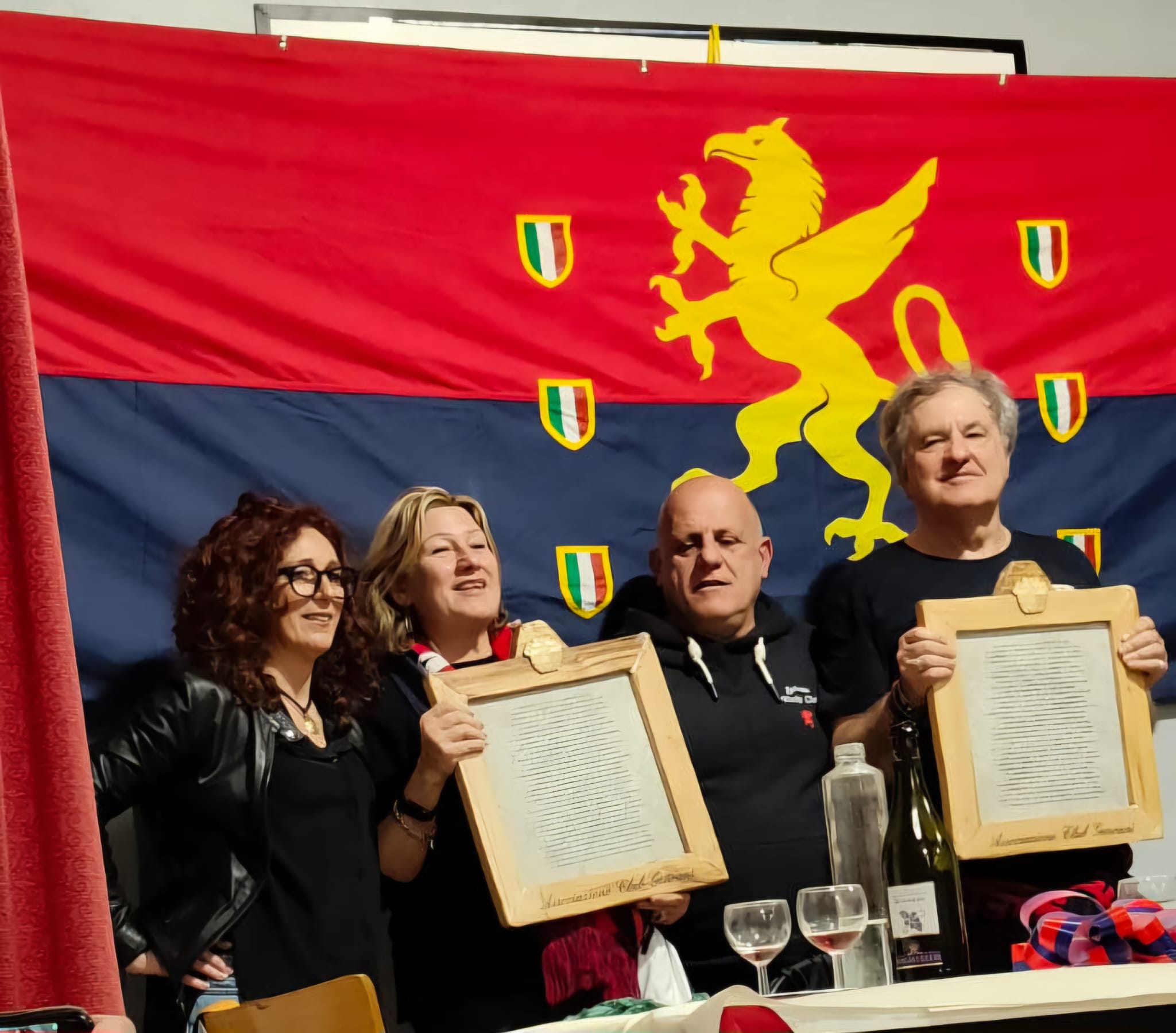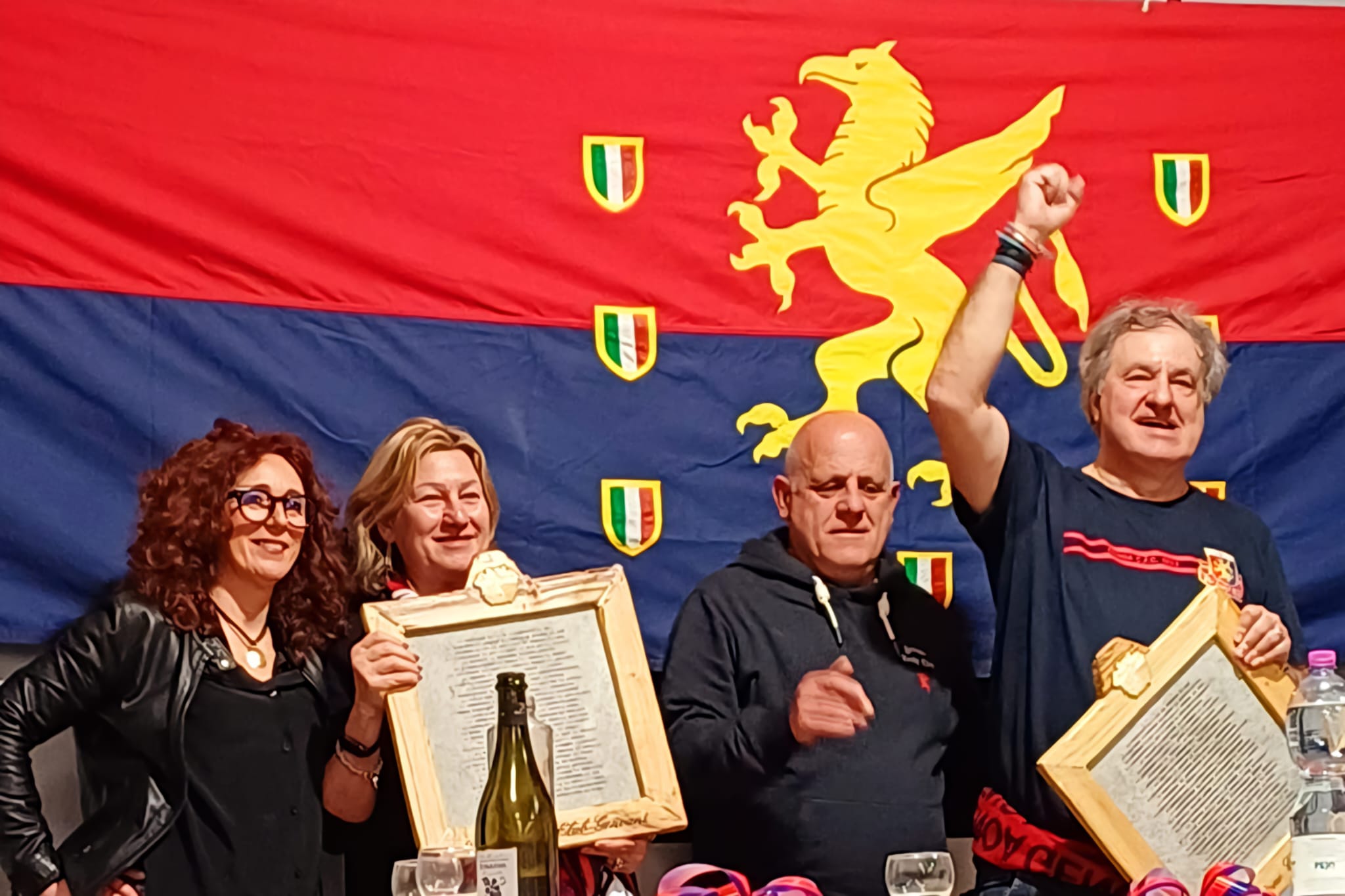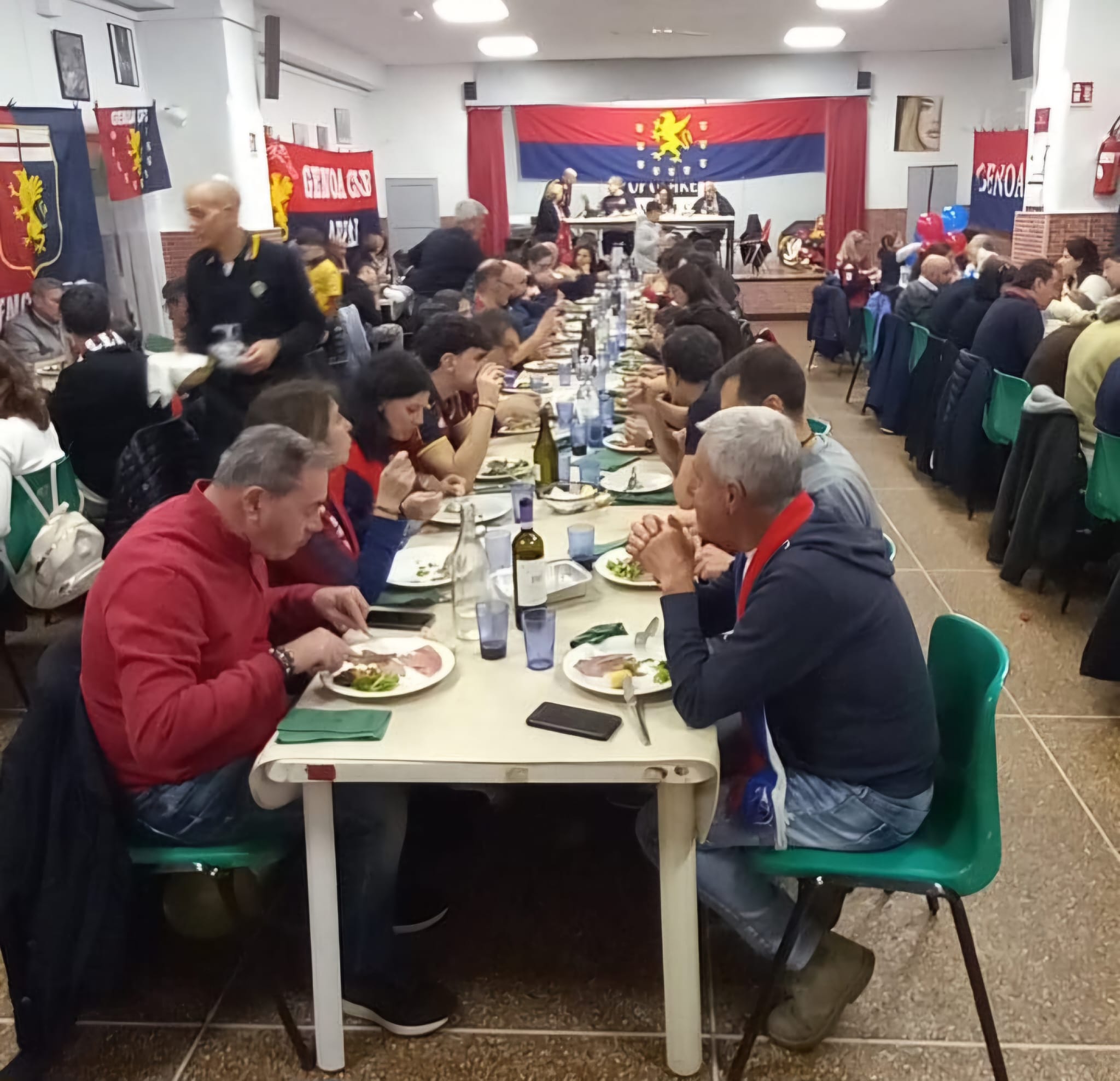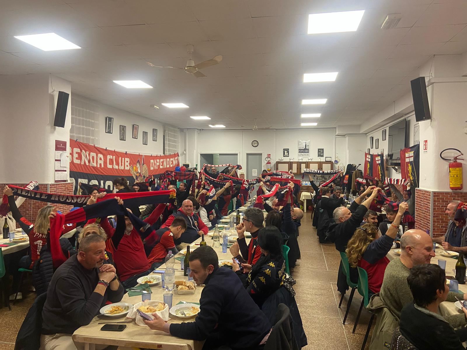 “Grande successo ieri della festa organizzata dai Club Dip. Regione Liguria e Arpal dei presidenti Giovanni Villani e Rosella Bertolotto, con una cena presso la Cucina Popolare Genovese che svolge una benemerita attività sociale e solidale. Graditi ospiti i calciatori Aaron Martin e Hugo Cuenca, accolti con entusiasmo, hanno partecipato, accompagnati da Matteo Rossi, con grande simpatia e disponibilità, alla serata conviviale, allietata da una playlist musicale a carattere, naturalmente rossoblù. Per l’ACG-Associazione Club Genoani hanno partecipato e portato i saluti il presidente Paolo Caricci e la Vicepresidente Daniela Benghi“.