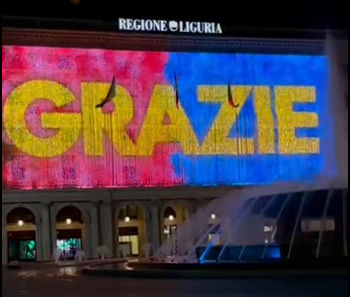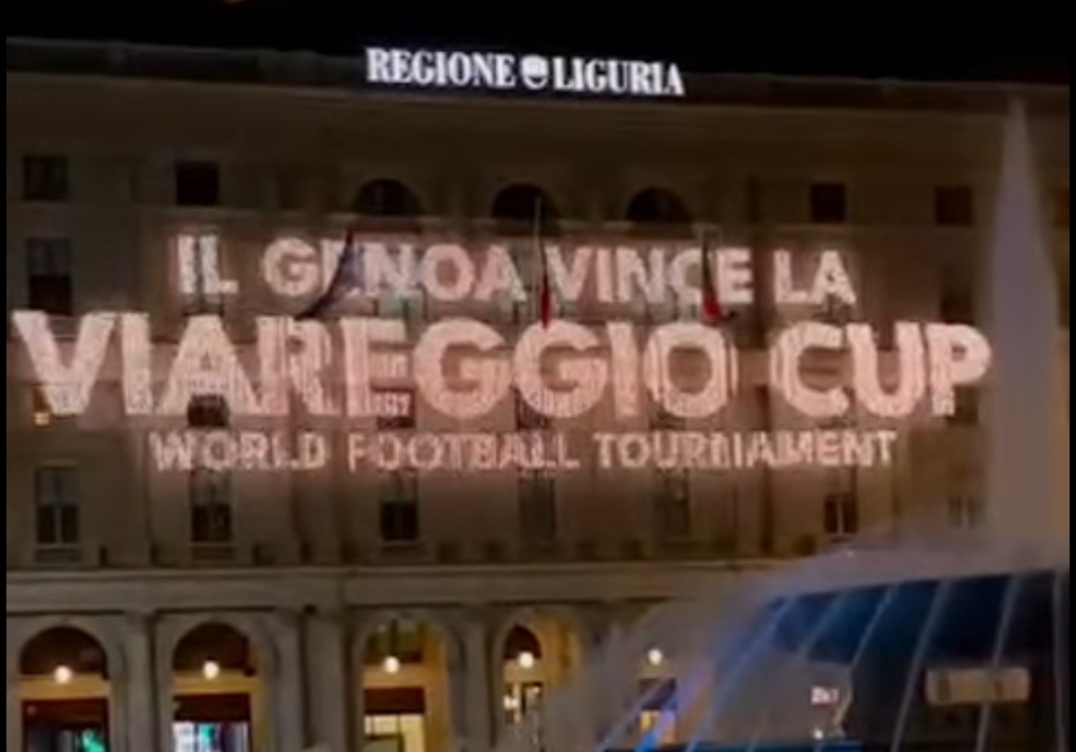 Tra la giornata di ieri e quella di oggi sono arrivati tantissimi complimenti dal mondo Genoa per l’Under 18 di mister Ruotolo, vincente nella 75° edizione della Viareggio Cup. I complimenti sono arrivati da tutto il mondo rossoblù. Nella serata odierna, poi, anche la Regione Liguria ha voluto omaggiare i ragazzi di mister Ruotolo e il Genoa con un breve video comparso sulla facciata del Palazzo della Regione in Piazza De Ferrari. “Il Genoa vince la Viareggio Cup World Football Tournament. GRAZIE GRIFONCINI” si legge nel messaggio.