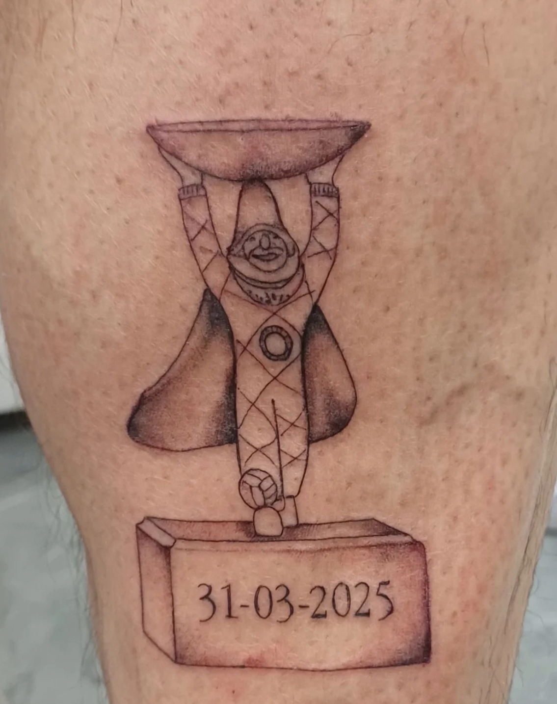 Il tecnico del Genoa Under 18, Gennaro Ruotolo, vincitore della 75° Viareggio Cup, ha deciso di tatuarsi sul polpaccio sinistro il “Burlamacco”, nome del trofeo della competizione viareggina, con la data del 31 marzo 2025. “Sta diventando un’abitudine? Ma che abitudine (ride, ndr). É il triplete” aveva ironizzato ad inizio intervista mister Ruotolo nel ripercorrere la sua storia da tecnico delle giovanili, che lo ha visto vincere col Genoa anche due scudetti di categoria Under 18.