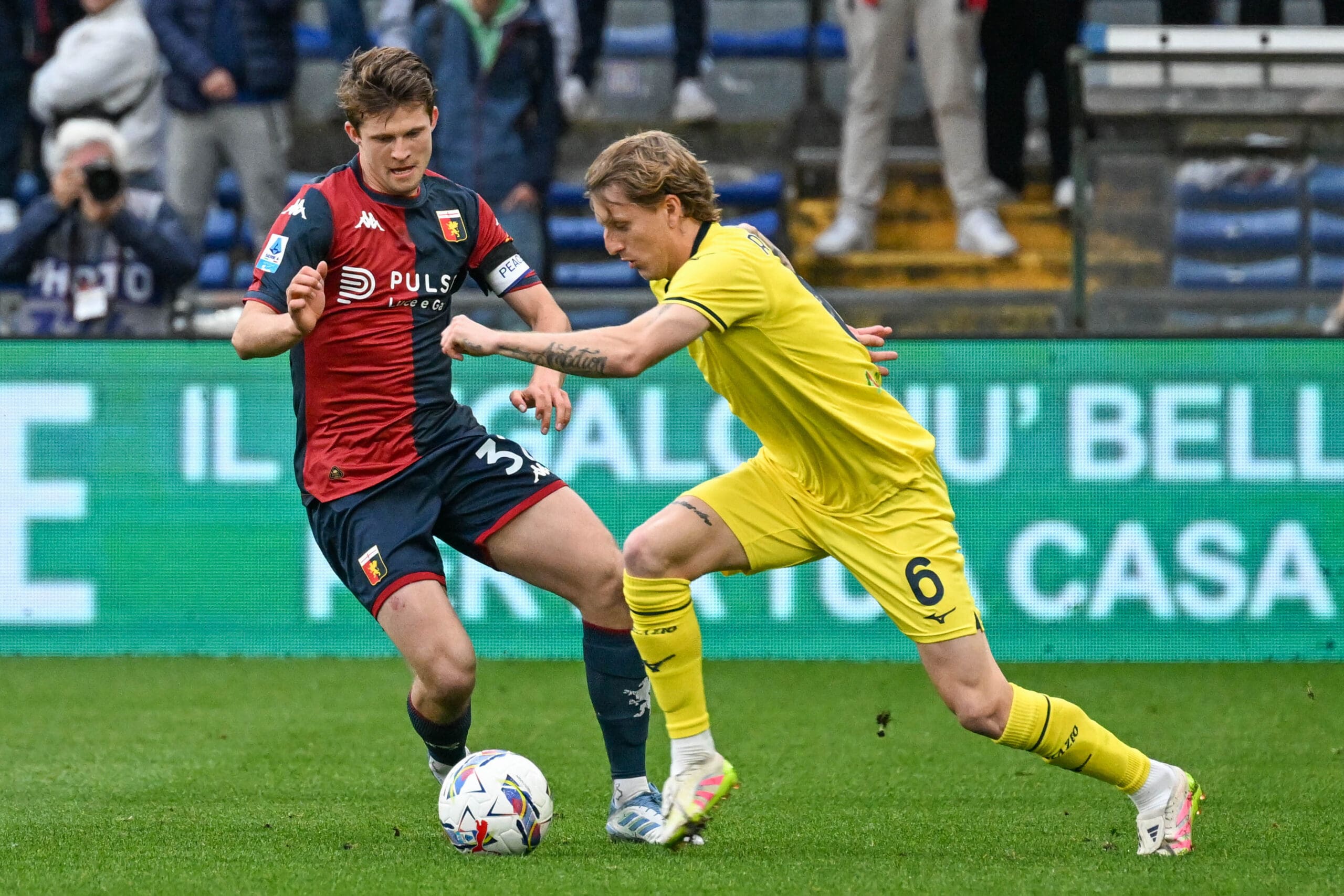 2′ – Subito primo corner in favore del Grifone dopo una bella sgroppata di Thorsby sulla sinistra. Alla battuta va Martin che trova però la respinta della retroguardia biancoceleste, sul proseguo dell’azione Vitinha cerca un compagno ma trova Mandas