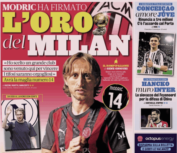GAZZETTA DELLO SPORT – La Gazzetta dello Sport parla di un colloquio tenutosi ieri tra Genoa e Inter per Valentin Carboni nel corso del quale si è parlato anche di De Winter, visto che i nerazzurri nella corsa a Leoni registrano l’inserimento del Liverpool. Segnalazione per la partenza del ritiro di Moena, fissata per questa mattina.