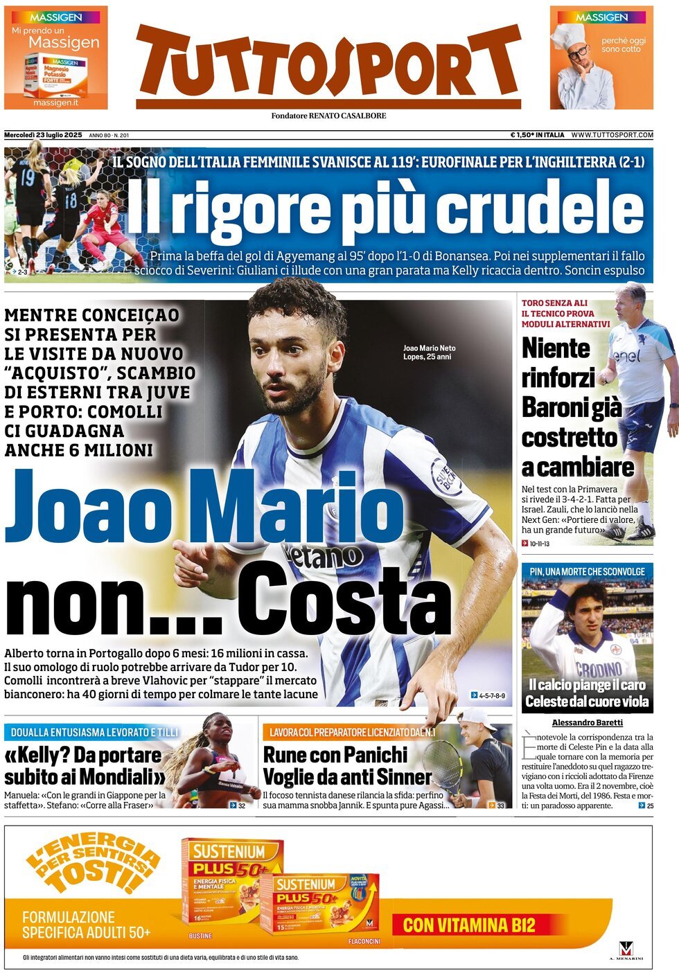 CORRIERE DELLO SPORT – Il quotidiano sportivo parla di Lorenzo Colombo del Milan, che è tornato ad essere accostato con frequenza al Genoa. L’assistito, nella scuderia di Beppe Riso, è attualmente a Singapore per la tournée del Milan, ma secondo quanto si legge sarebbe pronto in qualunque momento per ritornare in Italia e iniziare una nuova avventura. Su di lui anche il Parma, che però si sarebbe sfilato dalla corsa dopo averci provato: poi il Genoa avrebbe ripreso la leadership nell’operazione per un prestito con diritto di riscatto.