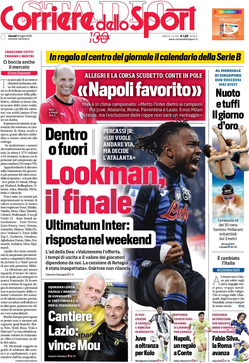GAZZETTA DELLO SPORT – Oltre a continuare a segnalare che sul taccuino dell’Inter, se venderà qualche difensore o qualche centrocampista, ci sono i rossoblù De Winter e Frendrup, la Gazzetta dello Sport questa mattina segnala quanto le varie squadre di Serie A della passata stagione hanno incassato dai diritti televisivi. Il Genoa è undicesimo con 37,5 milioni incassati: lo precedono Inter, Napoli, Juventus, Milan, Roma, Lazio, Atalanta, Fiorentina, Bologna e Torino.
