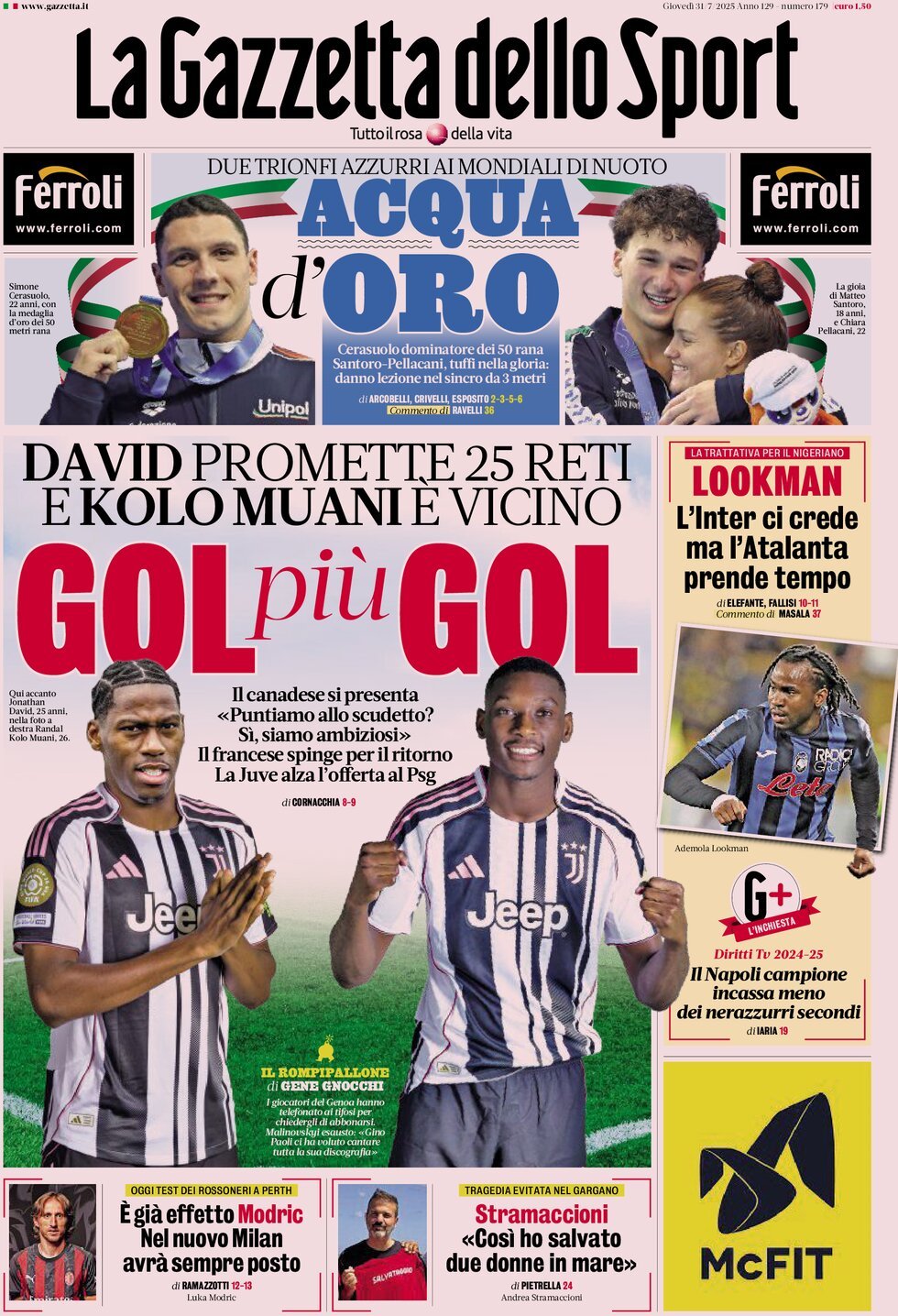 SECOLO XIX – “Stress-test per il il Genoa nel ritorno a Oviedo. Vieira si gioca le carte Colombo e Carboni” è il titolo del Secolo XIX di questa mattina nel presentare il triangolare di questa sera(clicca QUI per seguire la cronaca su Buoncalcioatutti), che incuriosisce perché coinciderà con l’esordio di Carboni in rossoblù e quello di Colombo. Sono ancora alla “ricerca della migliore condizione” Vasquez, Østigard ed Ekuban, rimasti a Genova. Spazio anche al neonato Genoa Club Cordillera Cantabrica, nato poche settimane fa e pronto a lanciarsi e aprirsi a nuovi iscritti proprio a partire da oggi, giorno del triangolare di Oviedo. Spazio, infine, per la presentazione della seconda maglia che ripropone la Croce di San Giorgio.
