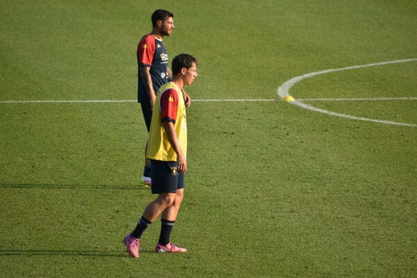 I rossoblù che si sono messi al lavoro agli ordini di mister Vieira sono stati ventotto, compreso De Winter: Leali, Siegrist, Sommariva, Baccelli (portiere classe 2008), Sabelli, Norton–Cuffy, De Winter, Østigard, Vogliacco (un lungo applauso dei tifosi lo ha accolto sotto la gradinata mentre svolgeva giri di campo) Vasquez, Marcandalli, Martin, Bohinen, Frendrup, Masini, Thorsby, Ellertsson, Colombo, Vitinha, Grønbæk, Papadopoulos, Stanciu, Malinovskyi, Carboni, Fini, Venturino, Ankeye, Cuenca. Ekhator lavora a parte.