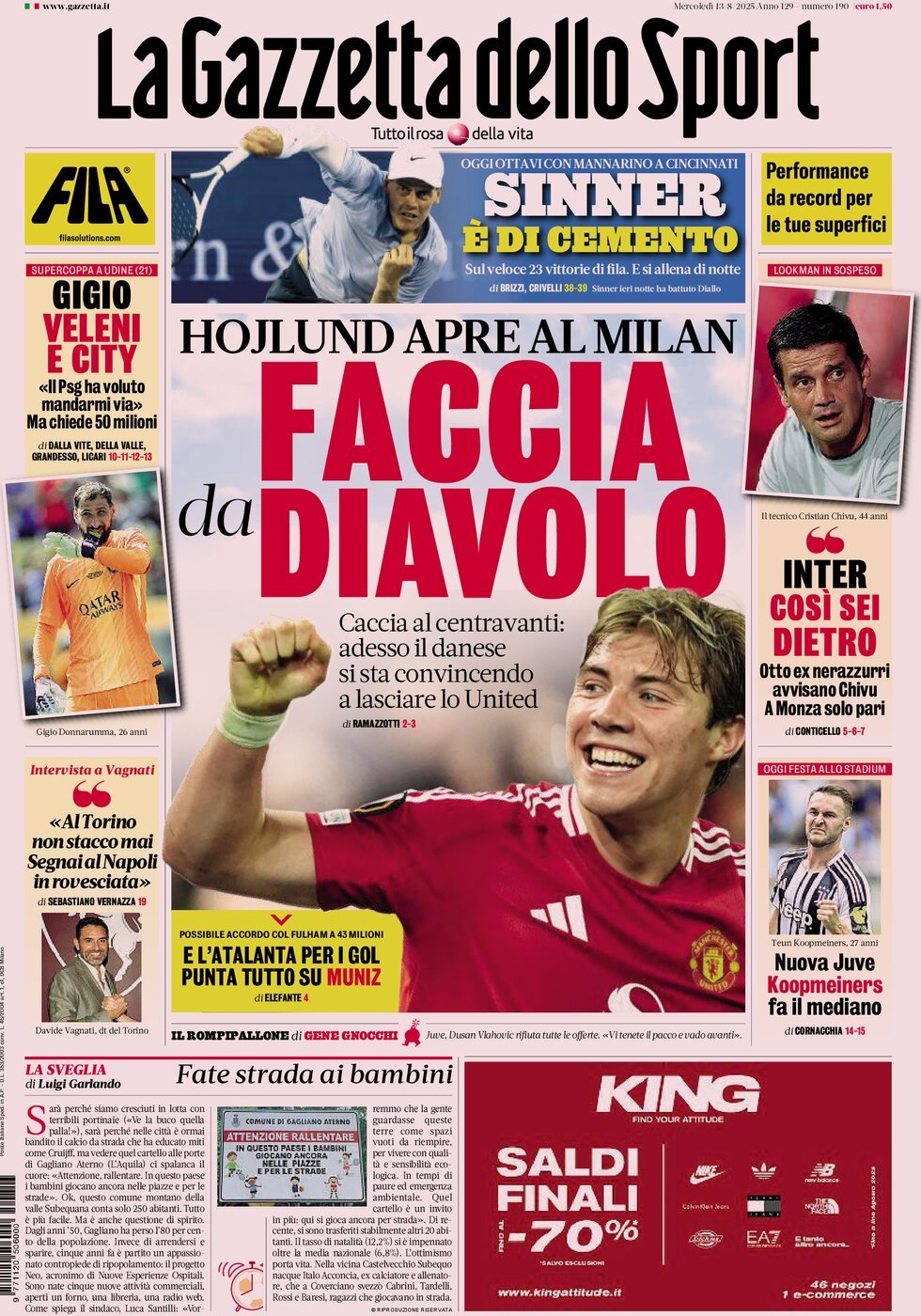 GAZZETTA DELLO SPORT – La Gazzetta dello Sport parla di De Winter al Milan e spiega che oggi arriverà l’ufficialità del suo passaggio in rossonero. Nel frattempo, il Genoa estende il contratto di Debenedetti fino al 2029 prima di cederlo in prestito secco all’Entella.