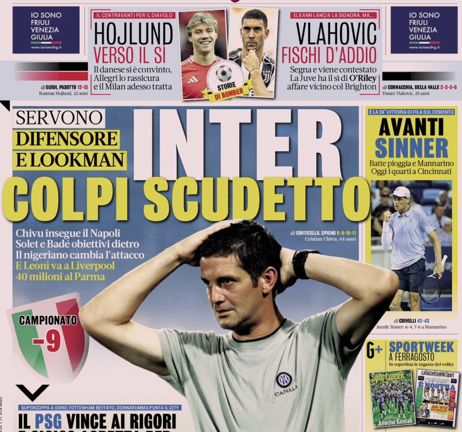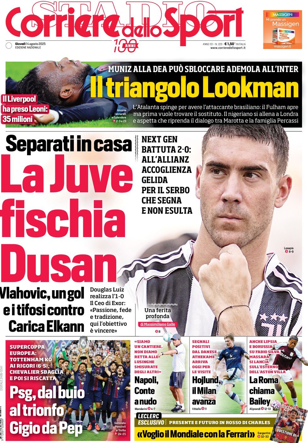 SECOLO XIX – “Stanciu, Vitinha, Malinovskyi & C. Gente di Coppa per il Genoa” titola stamane il Secolo XIX in un approfondimento dove si legge: “Domani sera c’è il debutto stagionale ufficiale al Ferraris. Vieira conta su uomini che sanno esaltarsi in gara secca. Il romeno ha trionfato in due paesi, l’ucraino freddò il Psg, il lusitano firmò un poker. E tanti altri hanno dolci ricordi“. Spazio anche ad un focus sul Genoa Women, ad un altro su Ceres, che sarà il nuovo sponsor di manica del Genoa per la stagione 2025/2026, e ad un ultimo sulla designazione arbitrale per la sfida col Vicenza (clicca QUI per saperne di più). Nella sezione di cronaca, spazio all’addio di Massimo Leopizzi.