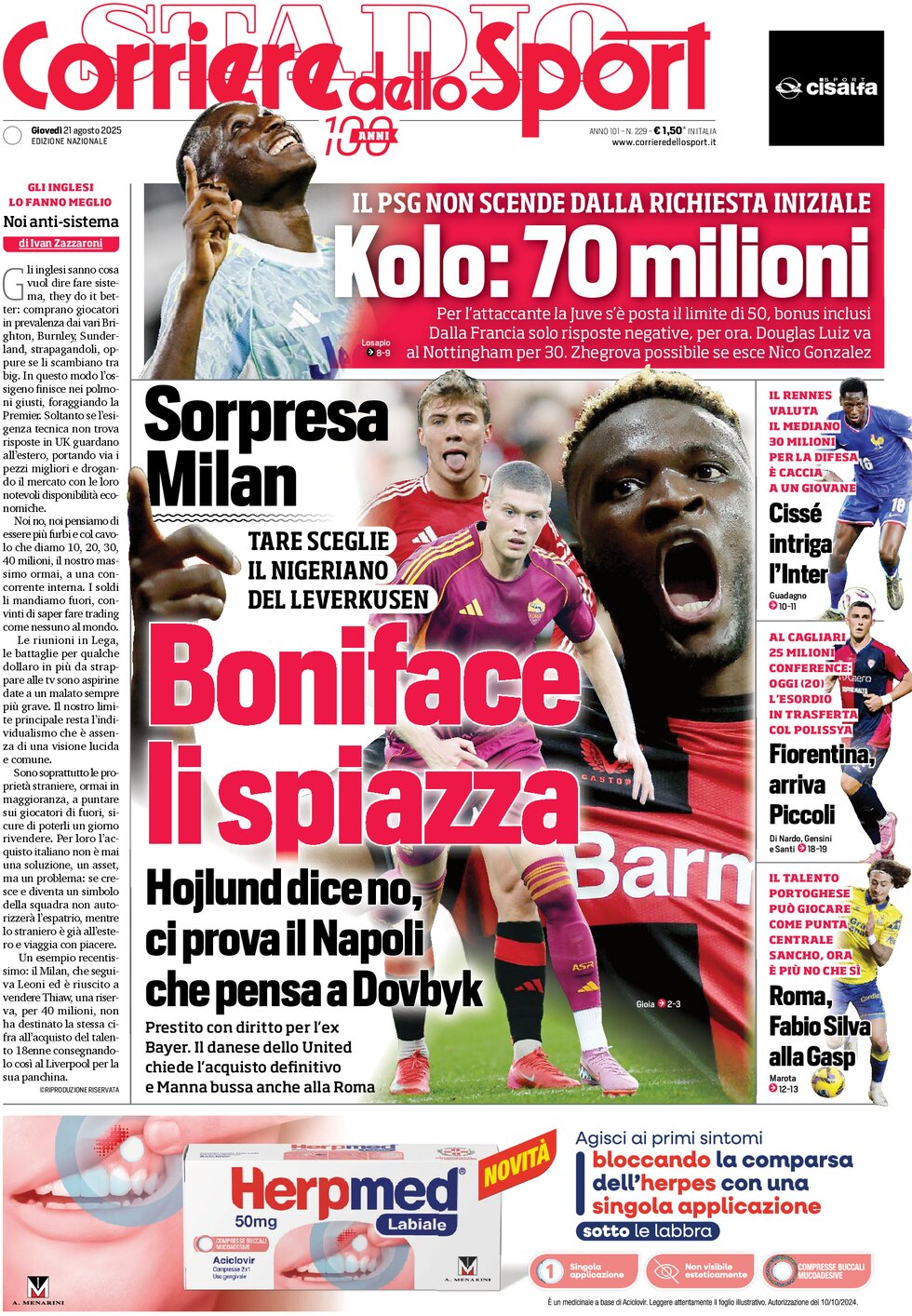 SECOLO XIX – Il Secolo XIX questa mattina parla dell’esordio ormai imminente del Genoa contro il Lecce, della volontà da parte del Genoa di fare rispettare la legge del Ferraris e degli scontri diretti, di un Vogliacco sempre più indirizzato verso il Pisa e, ancora, di una smentita sul nome di Neal Maupay, accostato ai rossoblù da network francesi. C’è poi una lunga intervista a Johan Vasquez, che mette in risalto l’enorme orgoglio che ha nel vestire la fascia da capitano del Genoa. “Onore enorme, non me l’aspettavo. La nostra forza è che siamo tanti capitani, davvero. Vieira mi ha dato tranquillità con un consiglio: “Johan, a volte si fa l’errore di pensare che se no è capitano deve essere perfetto ma non è così. L’importante è mantenere l’atteggiamento, il ritmo di gioco che avevi perché quello ti ha portato a fare il capitano”. È vero, magari pensi “sono capitano, non posso fare quella cosa”: No, è il contrario, sei capitano perché fai e dimostri di meritarlo in campo e fuori“.