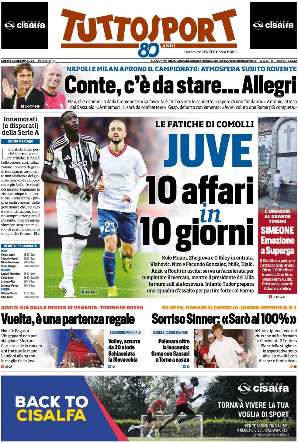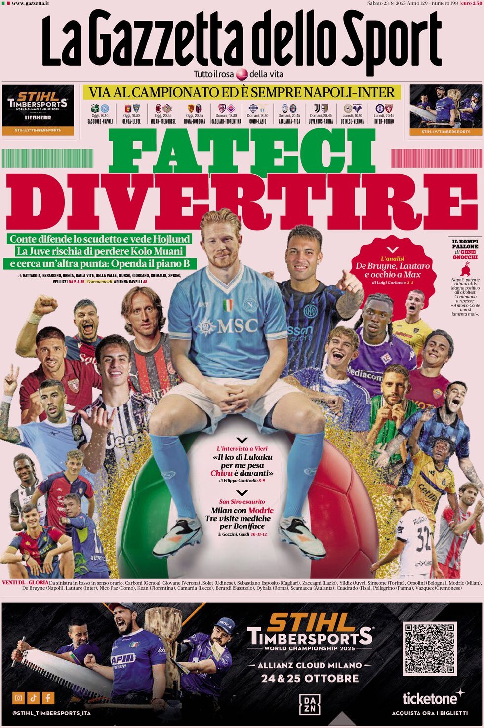 GAZZETTA DELLO SPORT – La Gazzetta dello Sport si avvicina all’esordio della Serie A e in merito al Genoa scrive: “Contro lo stereotipo della ciurma da battaglia, anche il Genoa ha imbarcato qualità (Carboni, Stanciu, Grønbæk, oltre a Malinovskyi e Messias) e si candida a sorprendere“. In un focus dedicato esclusivamente alla gara di questo pomeriggio si legge: “Colombo-Camarda, tra Genoa e Lecce è sfida di bomber prestati dal Milan“. Segnalazione per Vogliacco come possibile rinforzo del Pisa, anche se in pole position c’è Bonfanti.