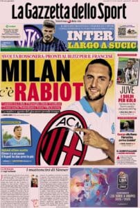 GAZZETTA DELLO SPORT – La Gazzetta dello Sport parla, a sua volta, di Cambiaso e della squalifica per due giornate, ma non fa menzione della multa al club rossoblù (va segnalato, peraltro, che il comunicato ufficiale del Giudice Sportivo la Lega Serie A non lo ha ancora pubblicato sul proprio sito).