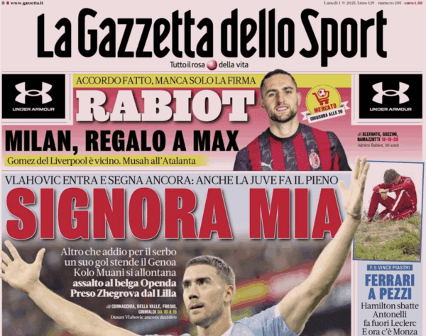 GAZZETTA DELLO SPORT – “Vlahovic, altro che addio. Entra per David, piega il Genoa e regala alla Juve la seconda gioia” titola stamane la Gazzetta dello Sport, che elogia la seconda vittoria su due della formazione bianconera, anche se non esalta ancora la manovra della squadra di Tudor. Del Genoa esaltata la voglia di combattere e lottare fino all’ultima traversa di Masini, certificate dalle parole di Vieira: “Meritavamo di più, andiamo avanti così“.