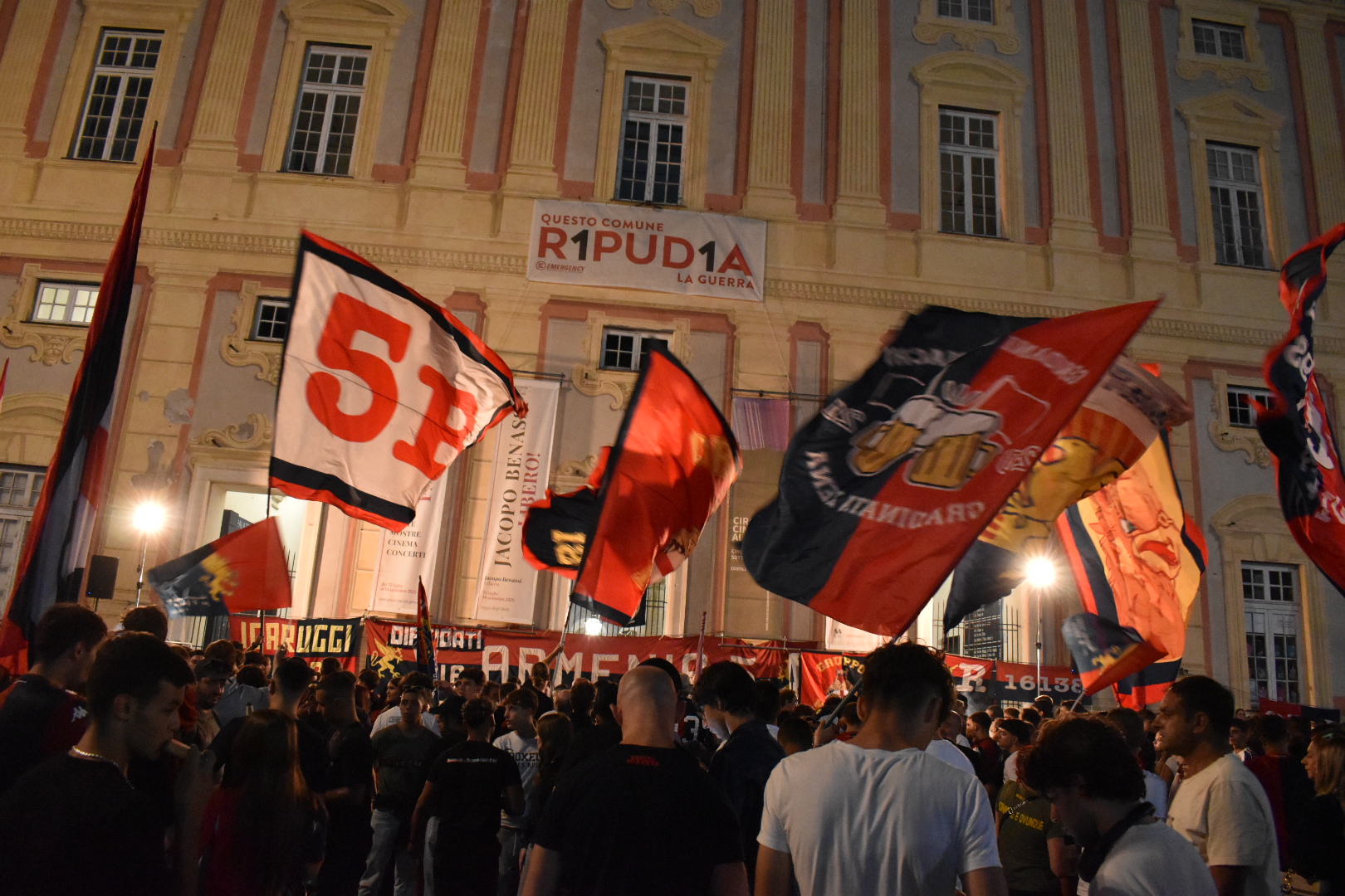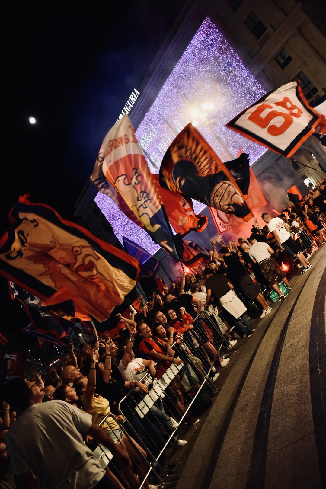 Allo scoccare della mezzanotte, dopo i fuochi d’artificio e l’inno del Genoa, la tifoseria si è spostata in corteo verso via Palestro 10/4, luogo nel quale venne firmato, presso l’allora Consolato britannico, l’atto costitutivo del Genoa il 7 settembre 1893.