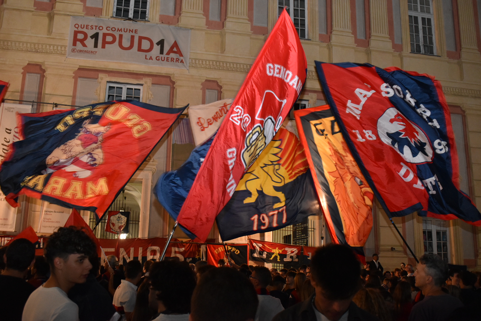 “Tanti auguri Genoa! Penso di avere la stessa passione per il calcio che avete voi. Voglio dire, a nome dei giocatori con più esperienza, vogliamo fare subito capire che qui non è una passeggiata, che bisogna prendersi subite delle responsabilità in campo. Con una tifoseria così non si può sbagliare per atteggiamento e comportamento. Sono contento di essere tornato per fare il massimo in campionato. Ci vediamo allo stadio” ha detto dalla scalinata di Palazzo Ducale Ruslan Malinovskyi. A parlare anche la capitana del Genoa Women, Giada Abate, che ha ricordato come le giocatrici