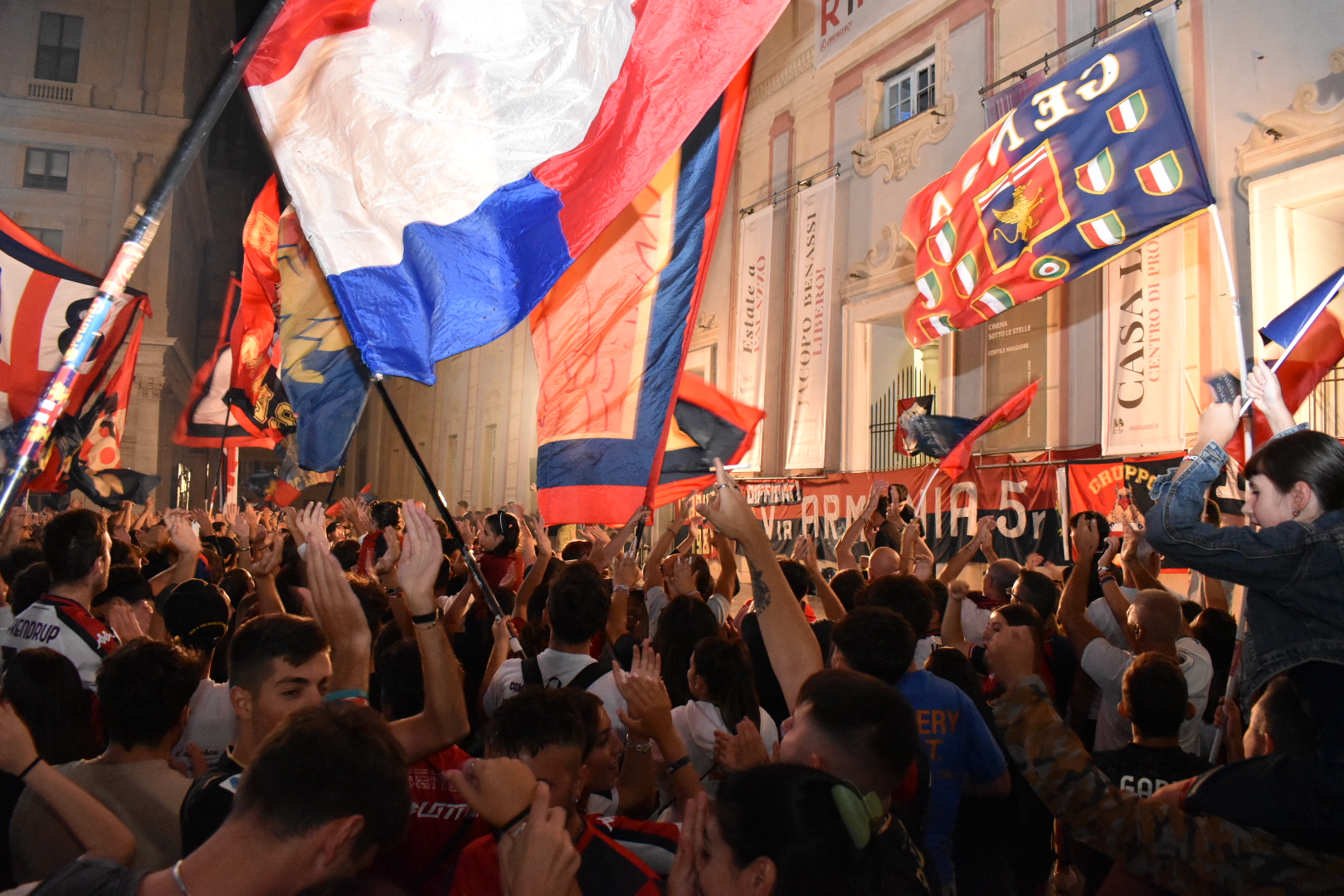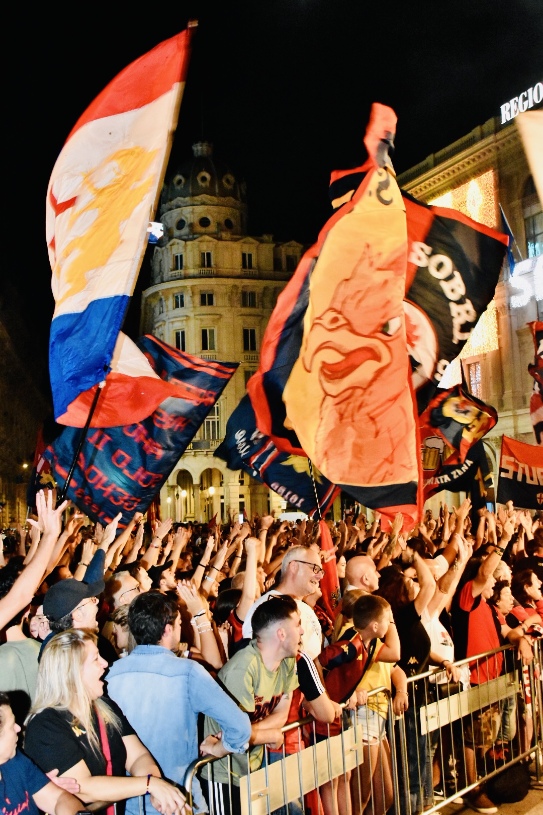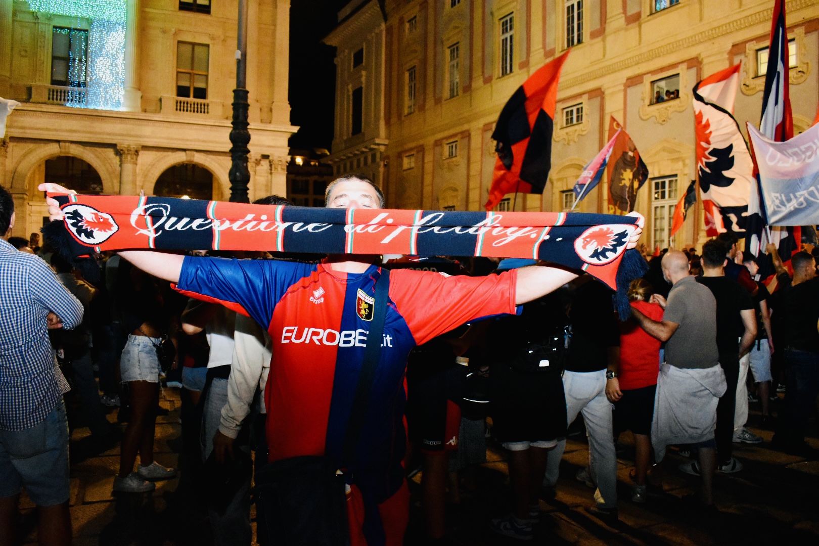 I tifosi del Genoa si sono radunati questa sera in Piazza De Ferrari per festeggiare i 132 anni di storia del club rossoblù, il più Antico d’Italia. Quella del 7 settembre non è mai un’attesa banale, ma un modo per ribadire il legame forte e indissolubile tra il Genoa e la città.