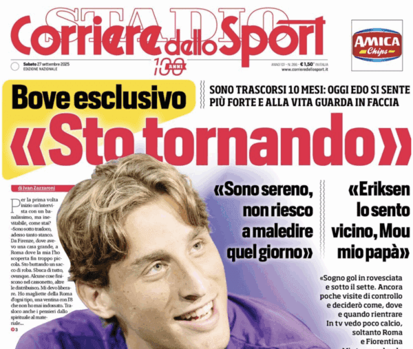 CORRIERE DELLO SPORT – Il Corriere dello Sport si sofferma sulla Lazio, sulle possibili modifiche di formazione, ma anche sul Genoa e su due giocatori in particolare: Cornet e Østigard. Entrambi dovrebbero tornare a disposizione dalla sfida contro la Lazio.