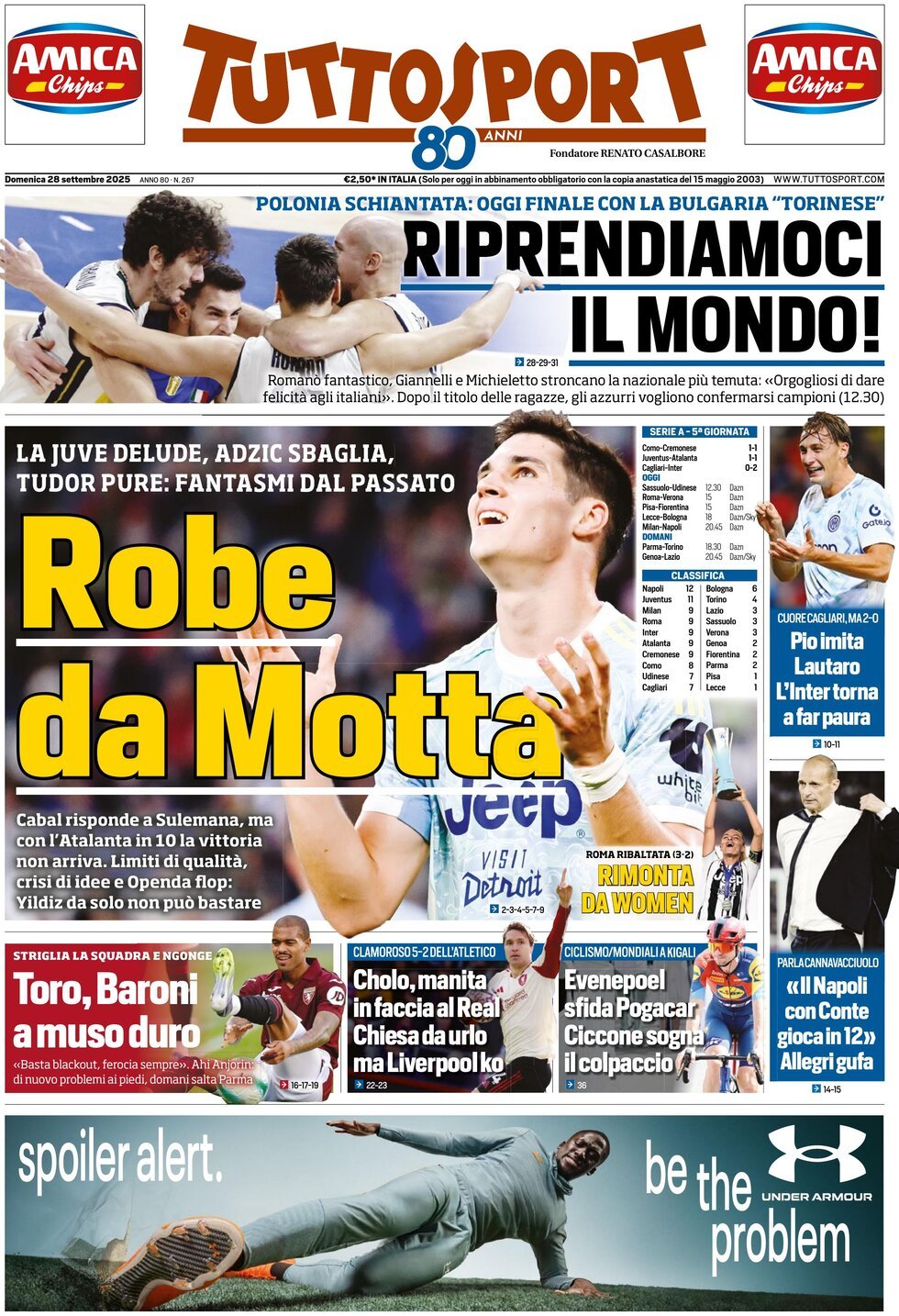 TUTTOSPORT – Solleva dubbi sul recupero di Østigard per la sfida contro la Lazio anche Tuttosport, che dà per certe le assenze di Cornet, Onana e Messias, che ha rimediato un affaticamento all’adduttore della coscia sinistra.