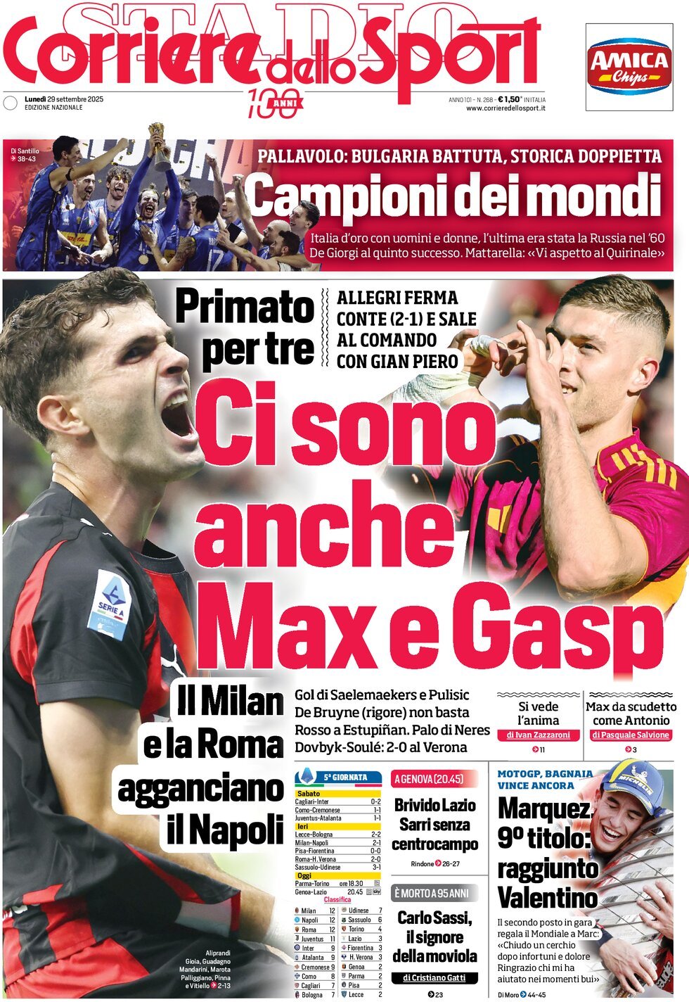 GAZZETTA DELLO SPORT – “Costretti a vincere” titola la Gazzetta dello Sport, che mette assieme le esigenze di casa Genoa con quelle di casa Lazio. “Genoa fantasia, servono i gol. Sarri cambia ancora la Lazio” prosegue il quotidiano in rosa, che aggiunge: “Sarri lascia dopo dieci anni il 4-3-3 e vira sul 4-2-3-1. Doppio centravanti: Dia e Castellanos“. Malgrado parli di doppio centravanti, alludendo all’ipotesi di un 4-4-2, il quotidiano in rosa propone uno schieramento orientato al 4-2-3-1 per la Lazio.