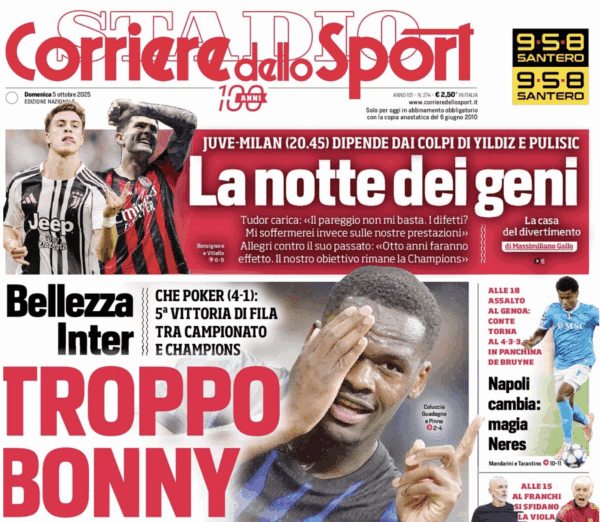 SECOLO XIX – “Ripetere la missione impossibile. Vieira ci riprova al Maradona” titola stamane il Secolo XIX, che aggiunge: “Il Napoli nel 2025 non ha mai perso in casa e soltanto tre squadre hanno strappato un pareggio tra queste i rossoblù. Il tecnico attraversa il momento più complicato da quando è sotto la Lanterna. Davanti Ekhator in vantaggio su Colombo“. Il quotidiano, che dedica anche un focus a sé stante sull’esordio del Genoa Women contro il Milan Women, propone le probabili formazioni, ma sottolinea che ci sarebbero vari ballottaggi in piedi: Martin ed Ellertsson sulla sinistra così come Østigard (diffidato) e Marcandalli sul centrodestra difensivo. Ekhator potrebbe avere la maglia da titolare, con Ekuban e Colombo pronti a subentrare.