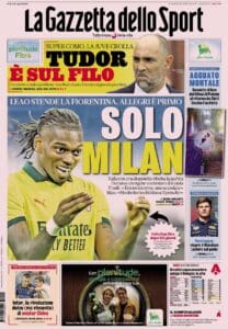 GAZZETTA DELLO SPORT – “Un grande Suzuki ferma il Genoa. Parma, punto d’oro” titola invece la Gazzetta dello Sport, che prosegue: “Rosso a Ndiaye, emiliani in 10 per quasi un’ora. Il portiere para il rigore di Cornet al 96′ e Vieira viene contestato“. Si legge ancora, nel corso dell’articolo: “Uno zero a zero sull’ottovolante come solo certe partite del Genoa sanno offrire. Per i padroni di casa cadono molte certezze, perché la barca traballa e persino Vieira non sembra in grado di trovare la via di uscita. Serviranno altre prove, ma la preoccupazione ora è grande“. Moviola assai più in linea con quanto ha detto la partita: giusto il rosso a Ndiaye, giusto il rigore. Sozza prende sei in pagella.