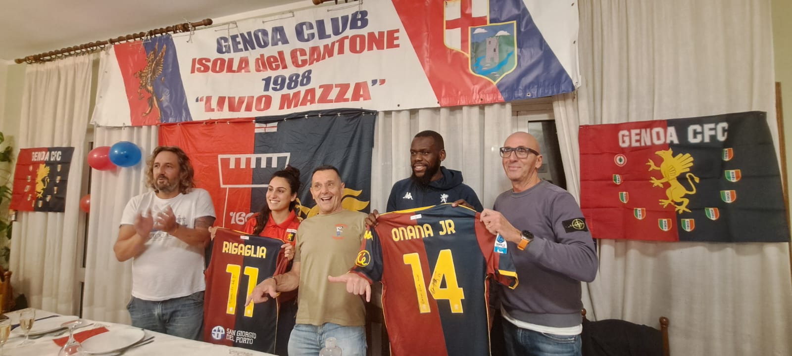 Nei giorni scorsi si sono tenute due feste nei Genoa Club sparsi per il territorio genovese e ligure. Alcuni giorni fa Onana e Rigaglia, giocatrice del Genoa Women, hanno fatto visita al Genoa Club Isola del Cantone “Fulvio Mazza”. In quella sede sono intervenuti Luca Barottino e Stefano Grazioli del Direttivo ACG.