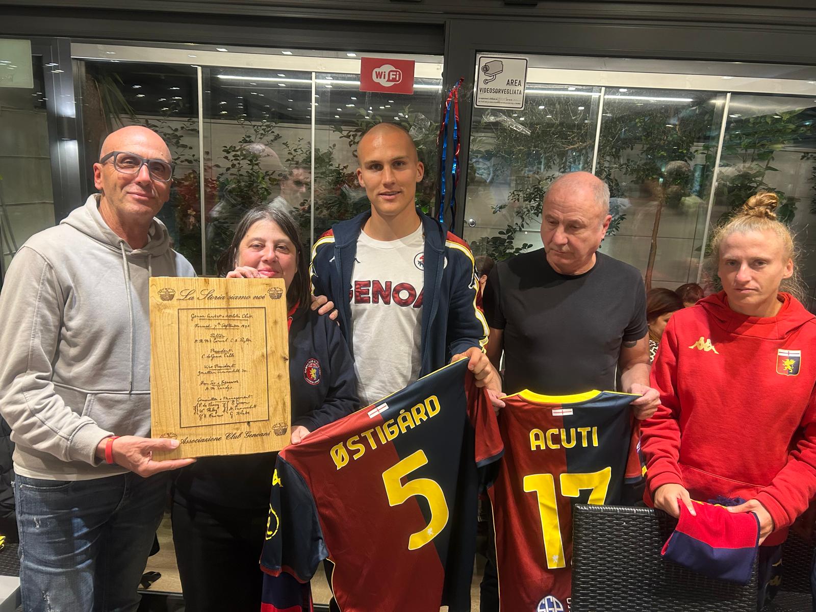 Nella serata di ieri, invece, Østigard e Acuti, attaccante della formazione femminile rossoblù, hanno partecipato alla cena del Genoa Club ELSAG della presidente Cristina Ratto. L’evento si è tenuto allo storico bar “Tentazioni” di Sestri Ponente. Per l’A.C.G. sono intervenuti Stefano Grazioli e Giovanni Villani del Direttivo.
