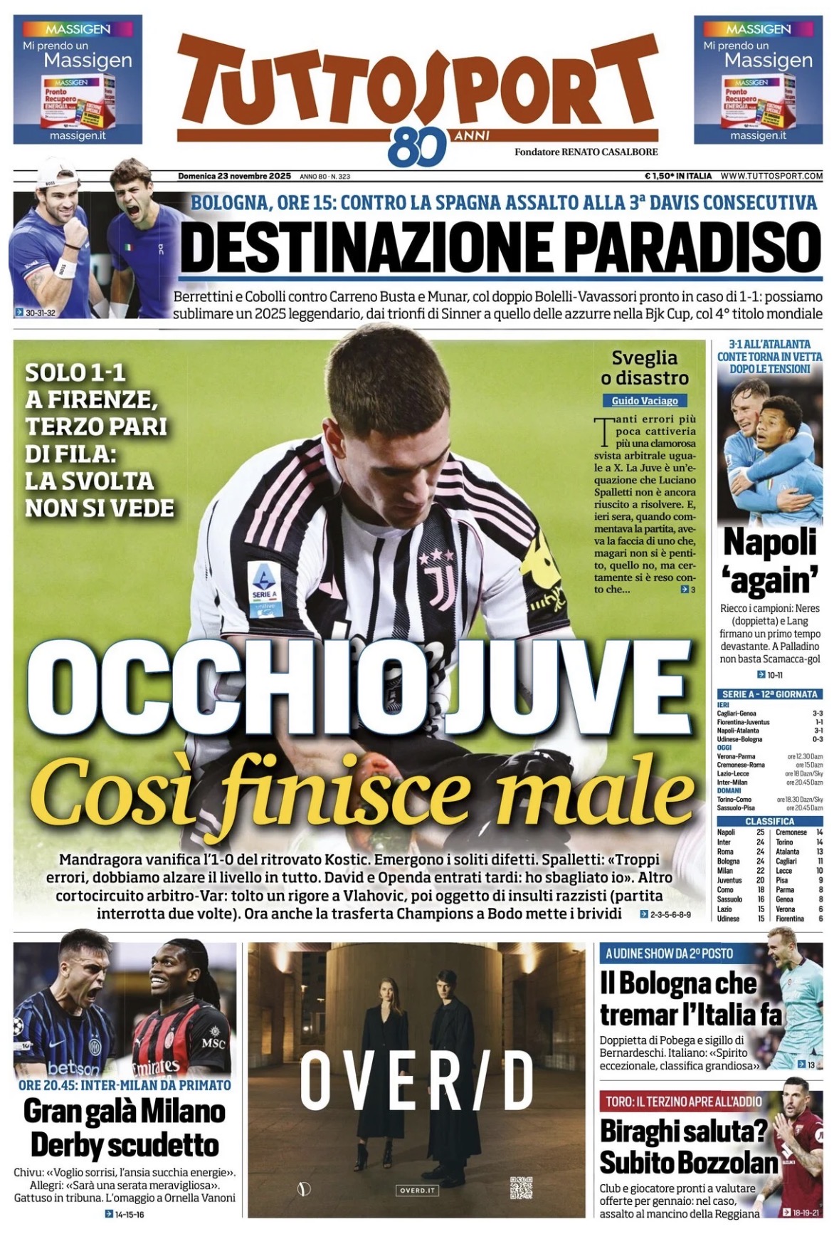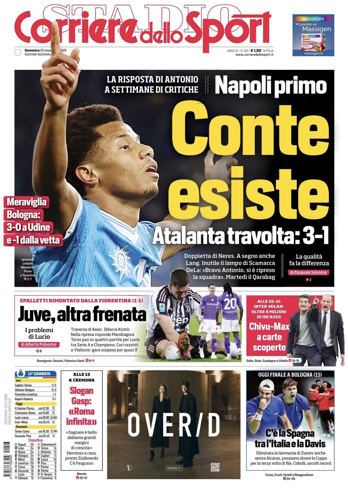 SECOLO XIX – “Genoa, pari rocambolesco a Cagliari: match comandato, ma 3-3 fortunoso” titola stamane il Secolo XIX per dare conto di quanto accaduto ieri pomeriggio all’Unipol Domus di Cagliari. “Due volte in vantaggio e ripreso con errori difensivi, il Grifone spreca altri gol (due salvataggi sulla linea) e si ritrova sotto. Nel finale succede di tutto: rete annullata a Colombo, papera di Caprile e ancora palo di Ostigard. Espulso Norton-Cuffy” si legge ancora. Poi spazio alle parole di Vitinha e a quelle di mister De Rossi nel dopogara, che ammette: “Peccato non aver vinto la gara, ma ho visto la squadra ragionare come voglio”.