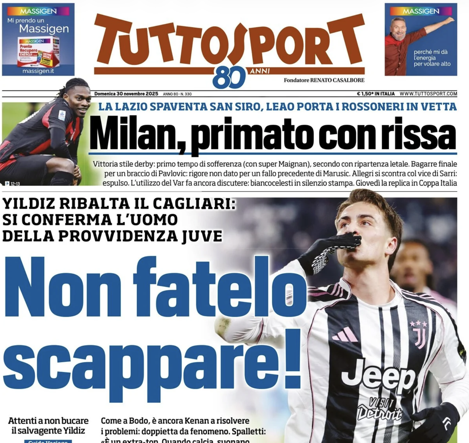 SECOLO XIX – “Genoa, rimonta da brividi. Primo squillo al Ferraris” titola il Secolo XIX, che così presenta la cronaca in prima pagina, ma prosegue all’interno della sezione destinata alla cronaca sportiva. “Cuore e grinta, la cura DDR funziona. Verona ribaltato, prima gioia al Ferraris” si legge. La sintesi della gara è racchiusa nel sottotitolo: “Avvio rossoblù negativo, la squadra di Zanetti ne approfitta con Belghali. Poi il pari di Colombo su assist di Vitinha. Nella ripresa il Genoa ha un altro piglio: dopo il palo di Ostigard il gol di Thorsby. Per De Rossi cinque punti in tre gare“. Segnalazione anche per la sconfitta del Genoa Primavera e per le dichiarazioni di mister De Rossi nel dopogara (“vittoria che pesa tanto. Lenti nel primo tempo, poi meglio“).