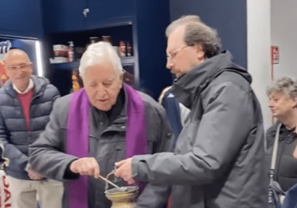 Nel pomeriggio odierno, a margine della funzione celebrata nella vicinissima Chiesa di San Pietro in Banchi, il reggente della medesima chiesa, Monsignor Marco Granara – vecchia conoscenza della nostra redazione, che più volte ha avuto modo di intervistarlo mischiano la fede in Dio in quella nel Grifone – ha dato la benedizione del nuovo Genoa Store, meta di un vero e proprio “pellegrinaggio” di tifosi in queste ultime 48 ore. Anche questo pomeriggio, infatti, era un continuo via-vai di avventori e avventrici.